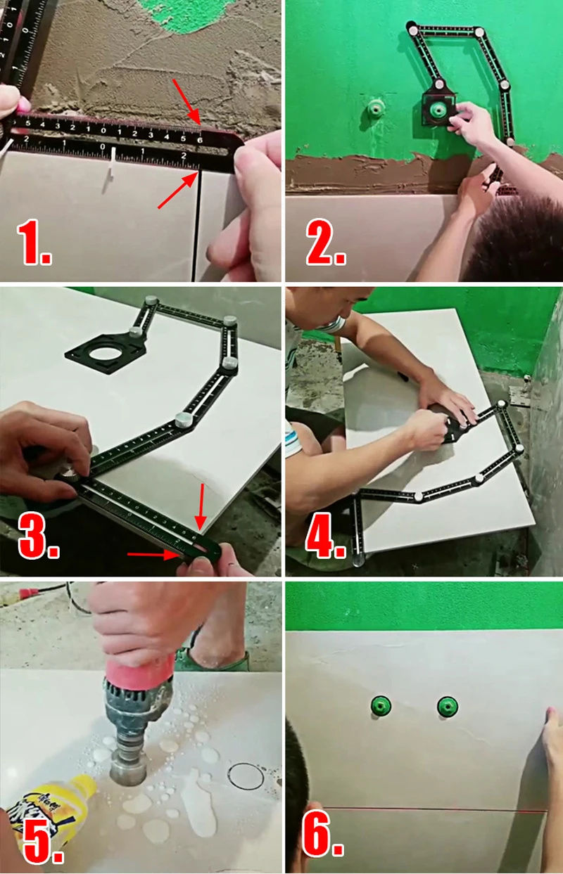 ONKE L.J 6-fold алюминиевый сплав Угол Finder измерительная линейка перфорированный шаблон формы инструмент локатор сверло Руководство плитка отверстие