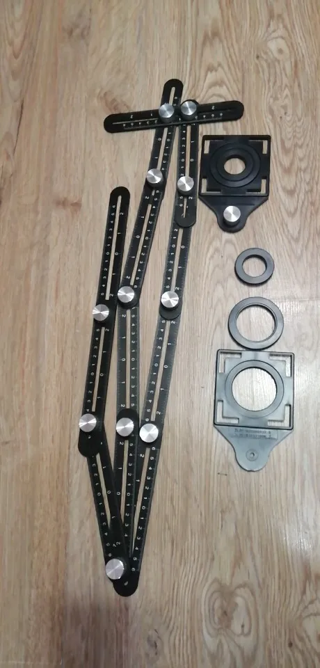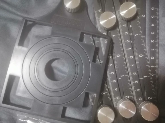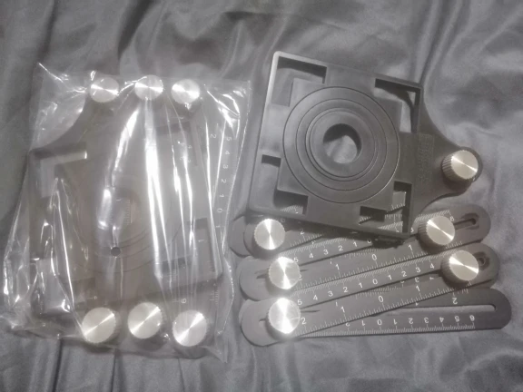 Супер быстрая доставка Шкалы на линейках чёткие, крутилки удобные, закреплены через прокладочки силиконовые, поэтому и фиксация секций хорошая. Шаблоны для отверстий из плотного пластика. В общем очень хорошее впечатление от приспособы. Пойду испытывать в деле.