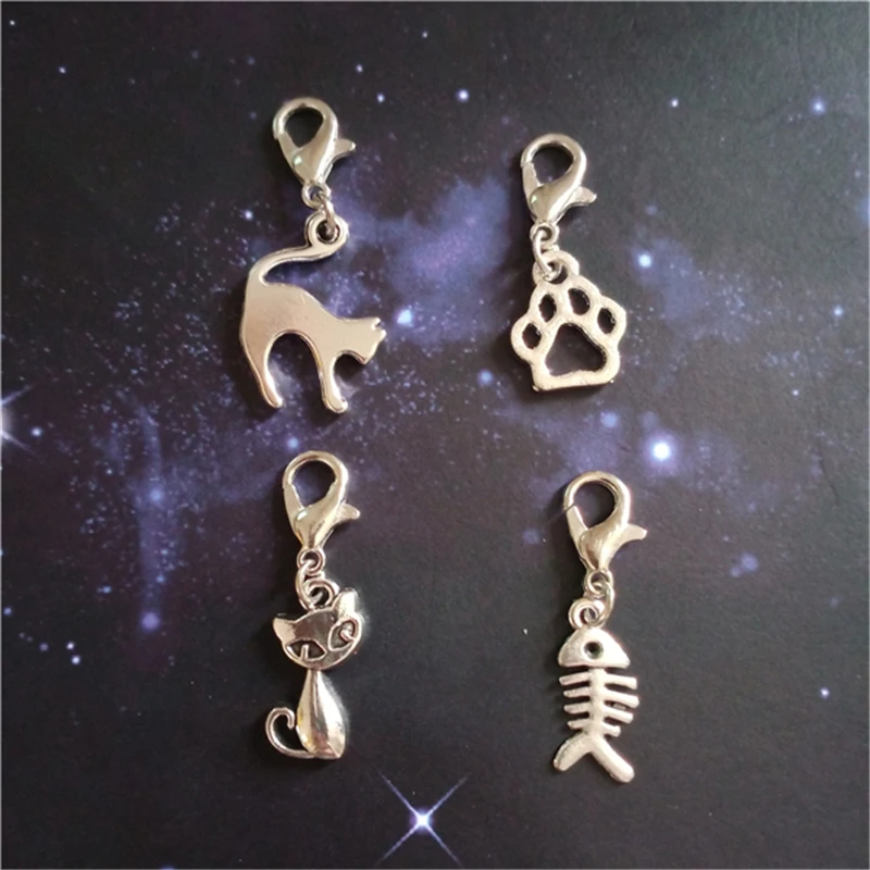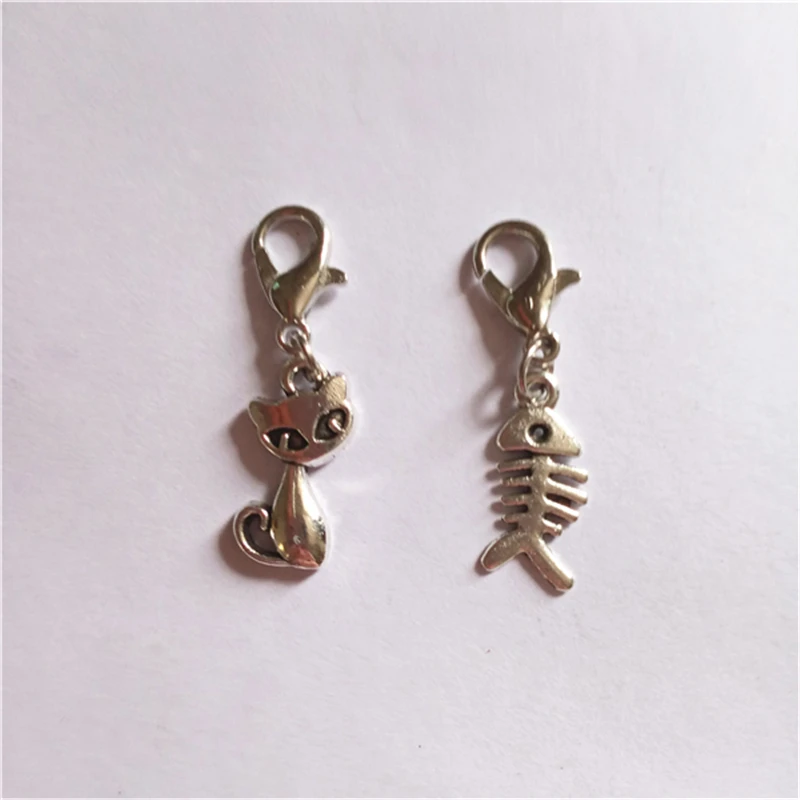 4 шт.лот, очаровательное кольцо для ключей на застежке-молнии, кулон в виде кошки, милый подарок в виде животного, подвеска в виде рыбьей кости