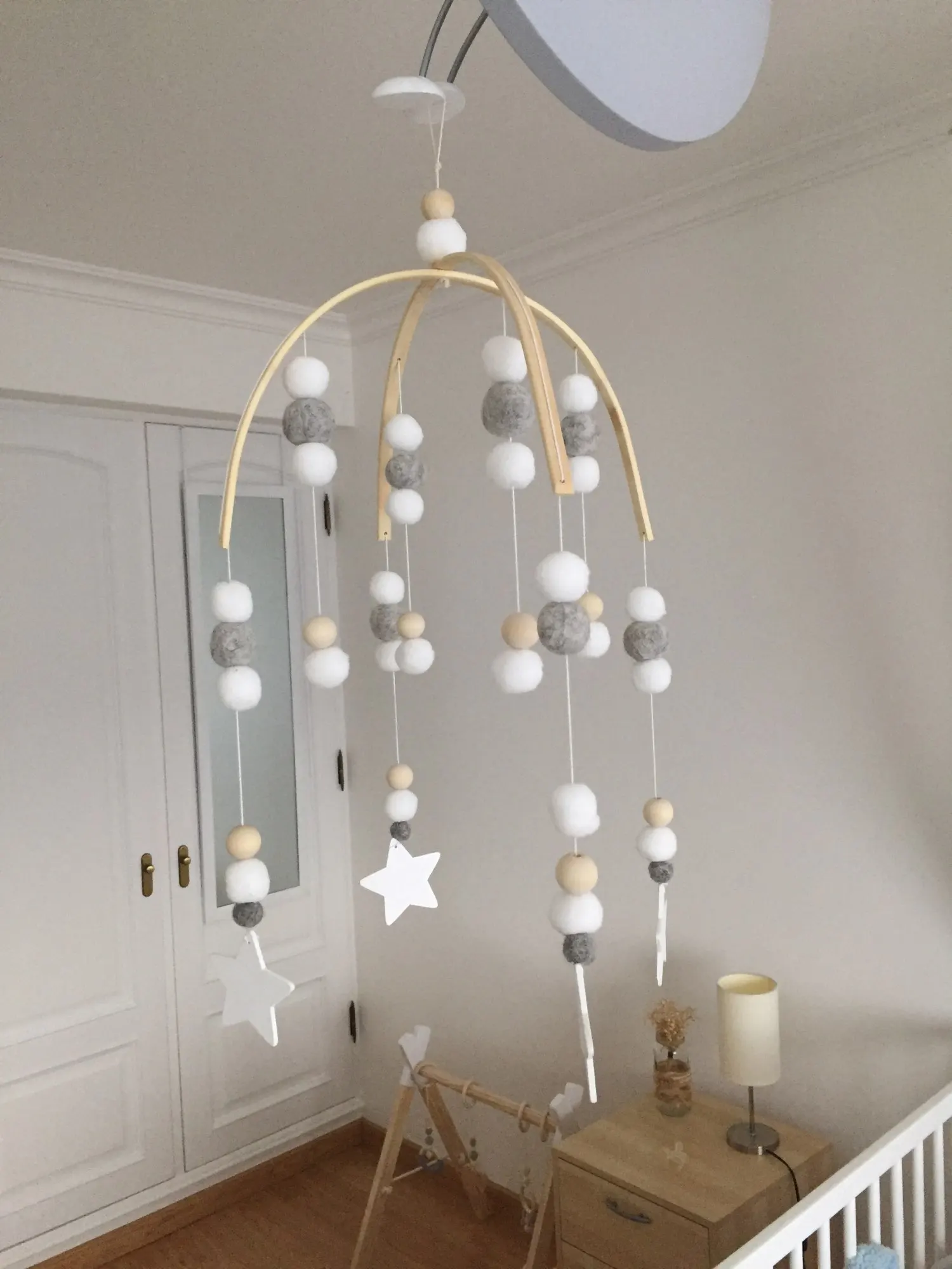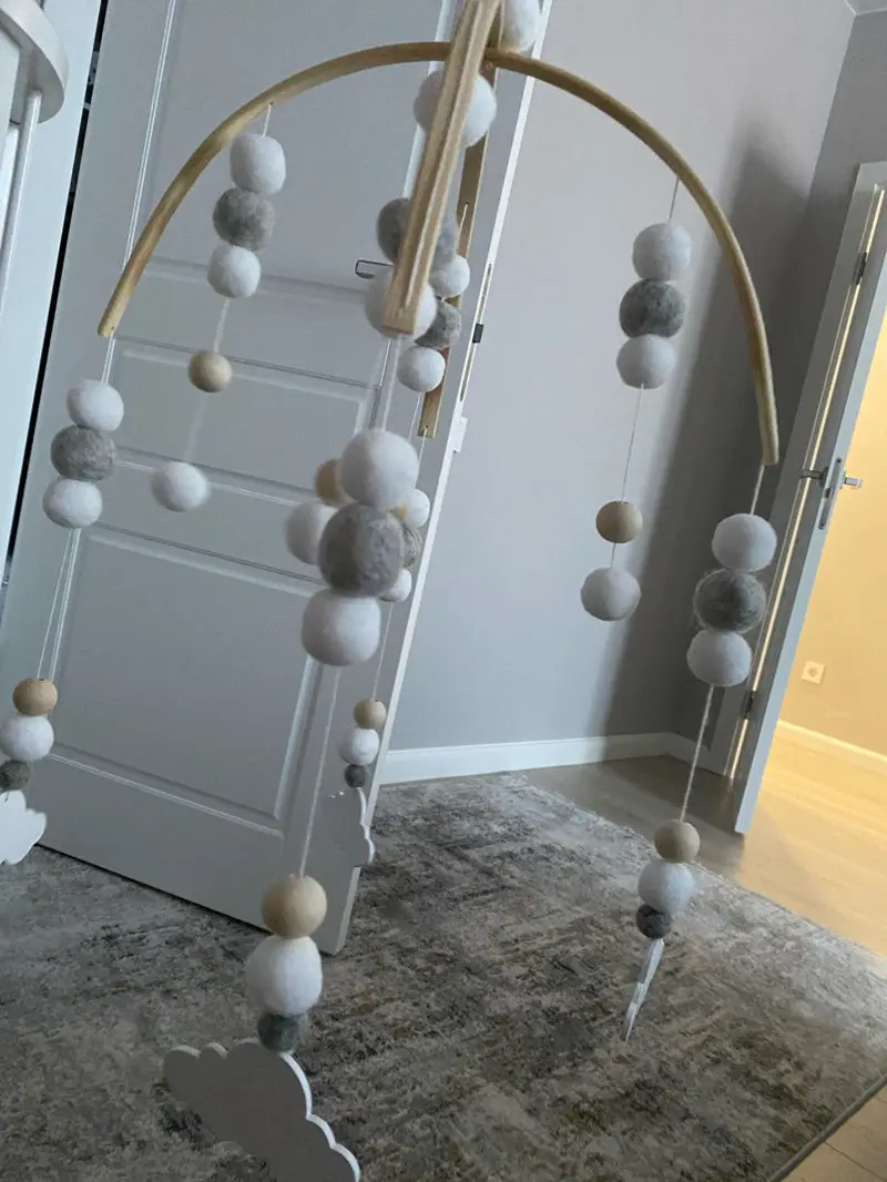 Скандинавские деревянные бусины, колокольчики с шерстяными шариками...