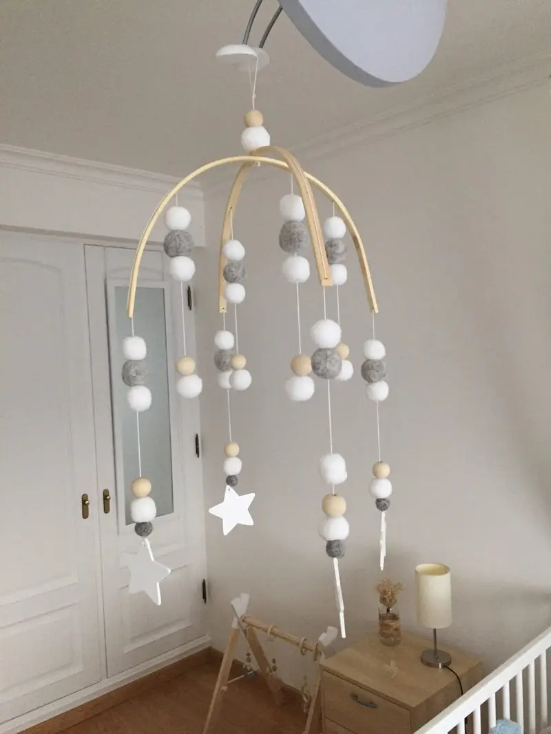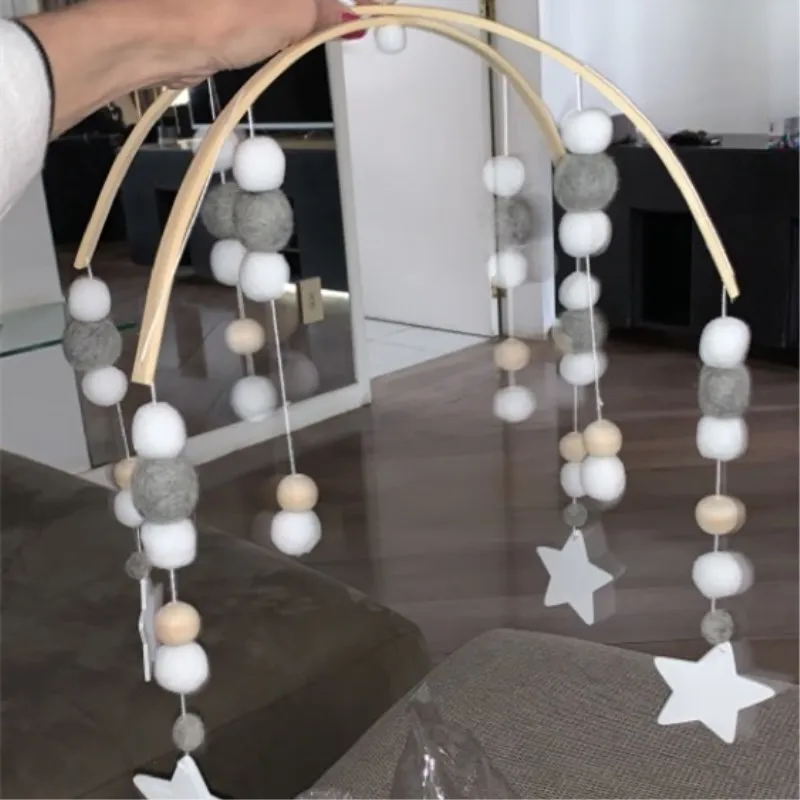 INS, скандинавские деревянные бусины, колокольчики для детской комнаты, украшение, шерстяные шарики, детская палатка, кровать, ветряная колокольчик, подвеска для детской25