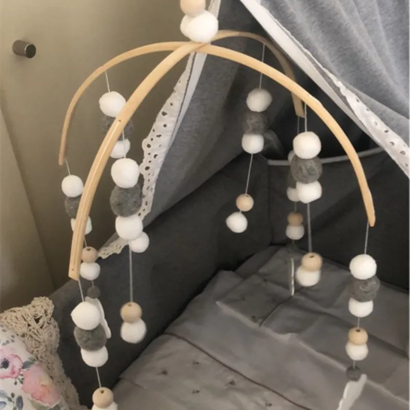 INS скандинавские деревянные бусины, ветряные колокольчики для детской комнаты, украшение, шерстяные шары, детская палатка, кровать, ветряная Подвеска для детской комнаты