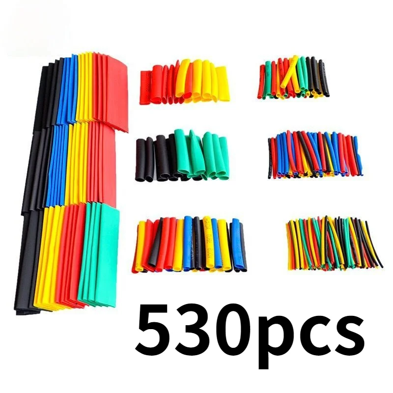Комплект термоусадочных полиолефиновых трубок в ассортименте, 530 шт., изолированные комплект трубок для проводов и кабелей 2:1