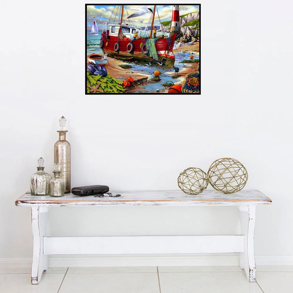 Pintura de diamante 5D, joyier de botaje, barco de paisaje, bordado...