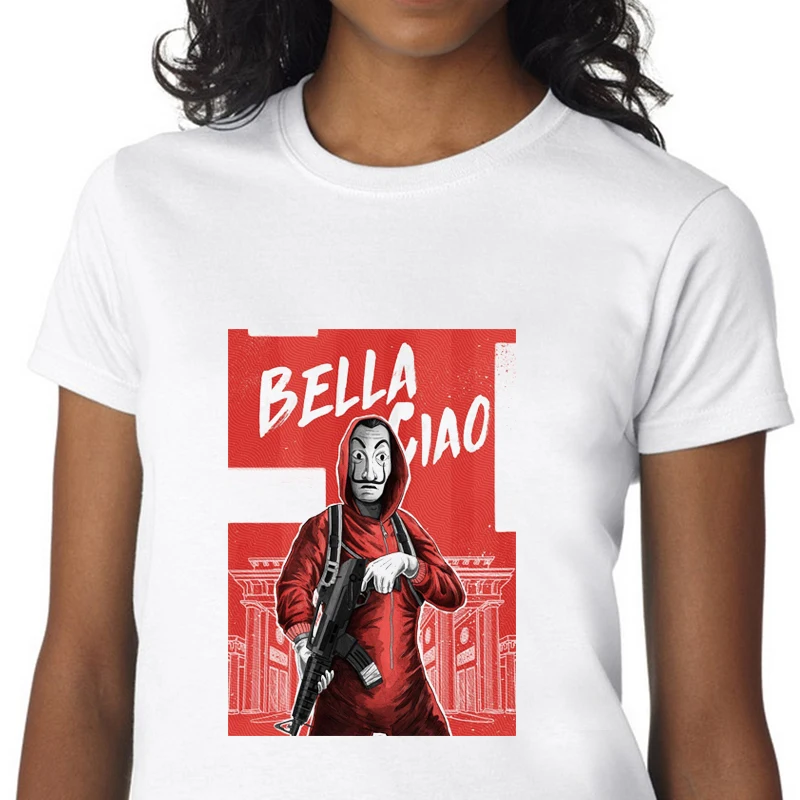Летняя коллекция 2019 года, женская футболка с принтом Дом Бумаги, с коротким рукавом