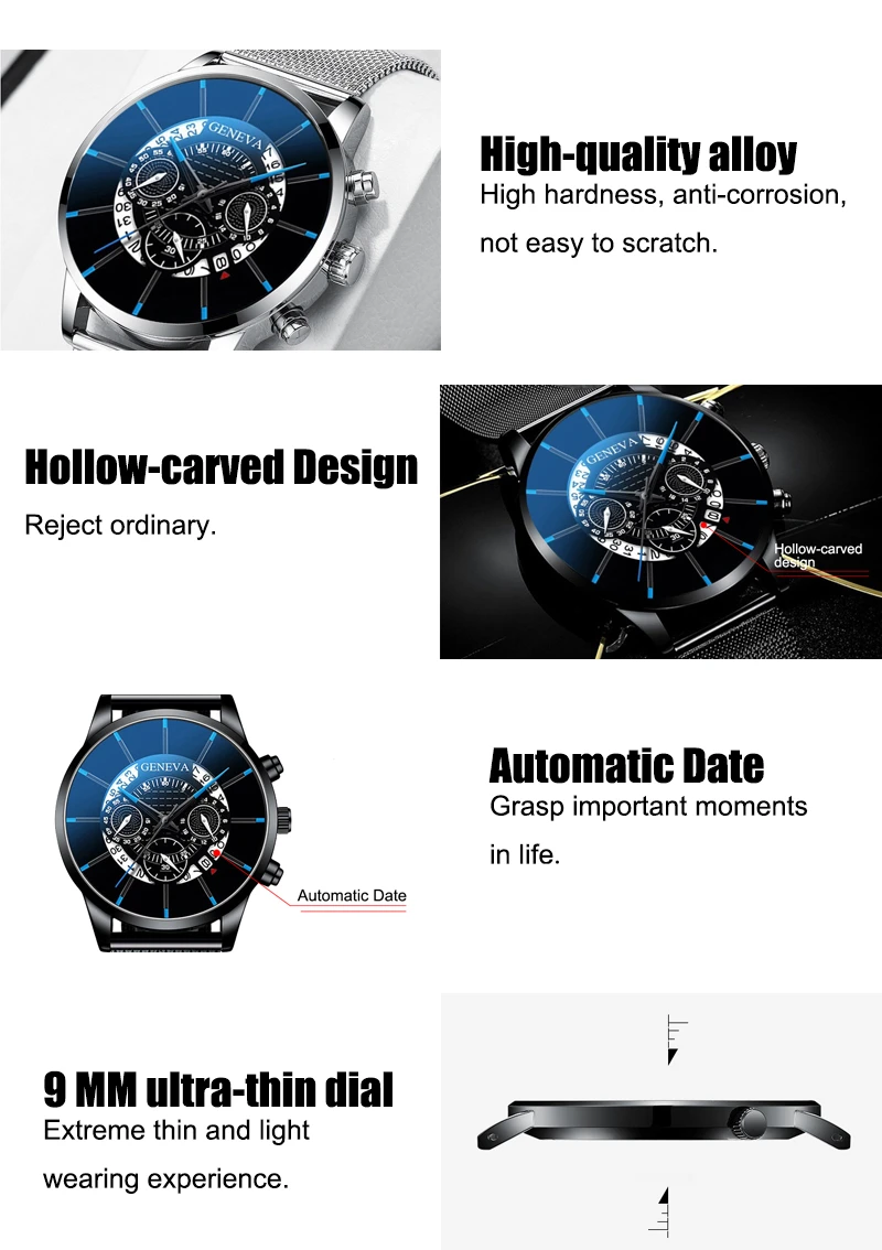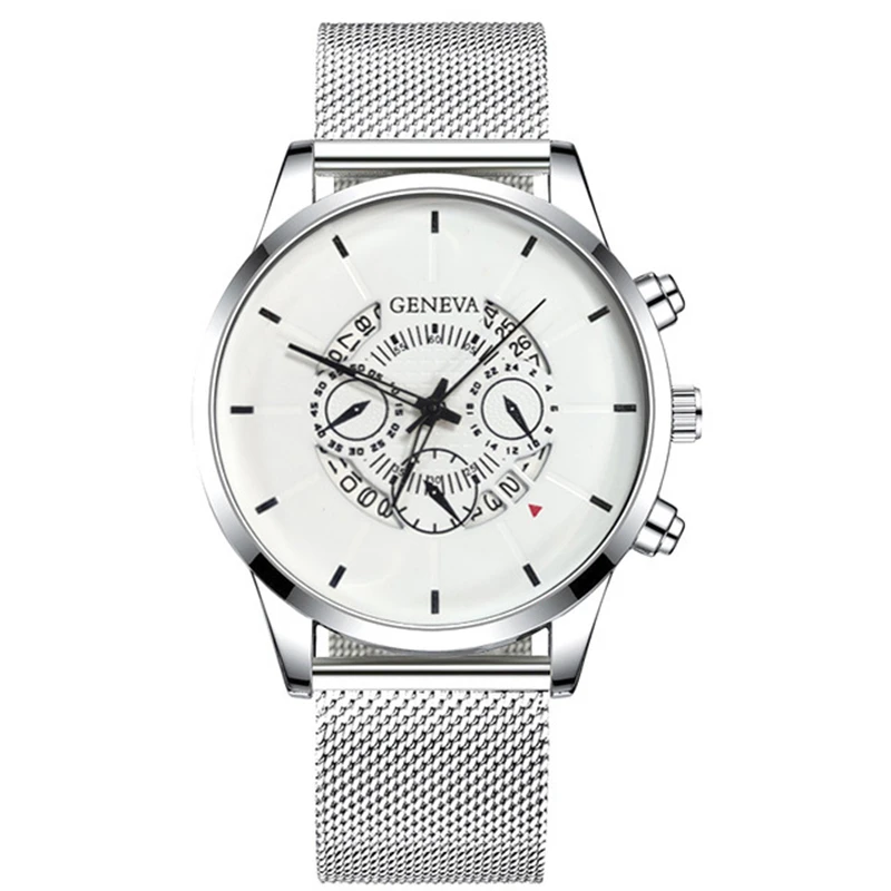 Часы мужские, наручные, с календарем и стальным сетчатым ремешком, ...