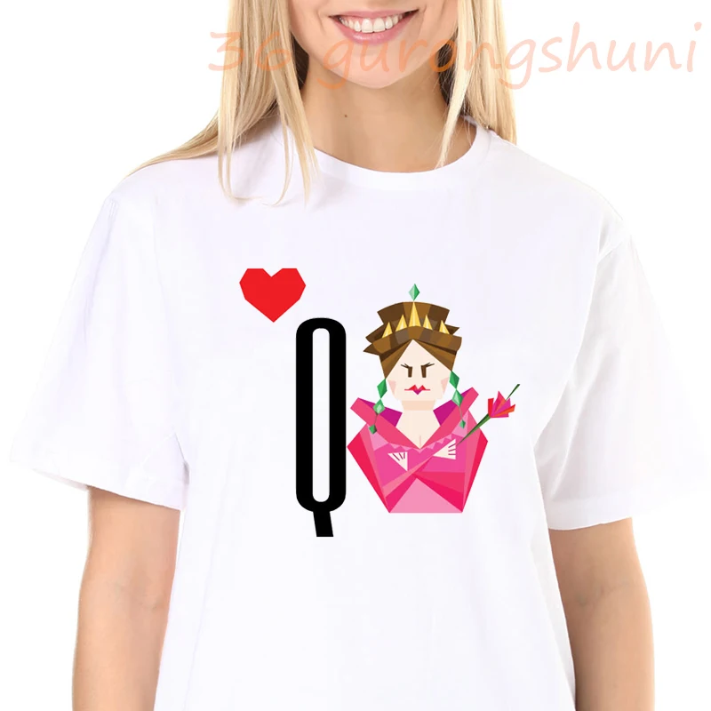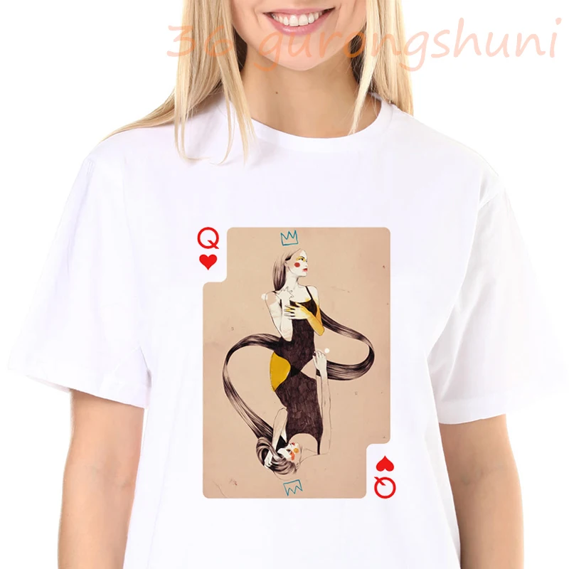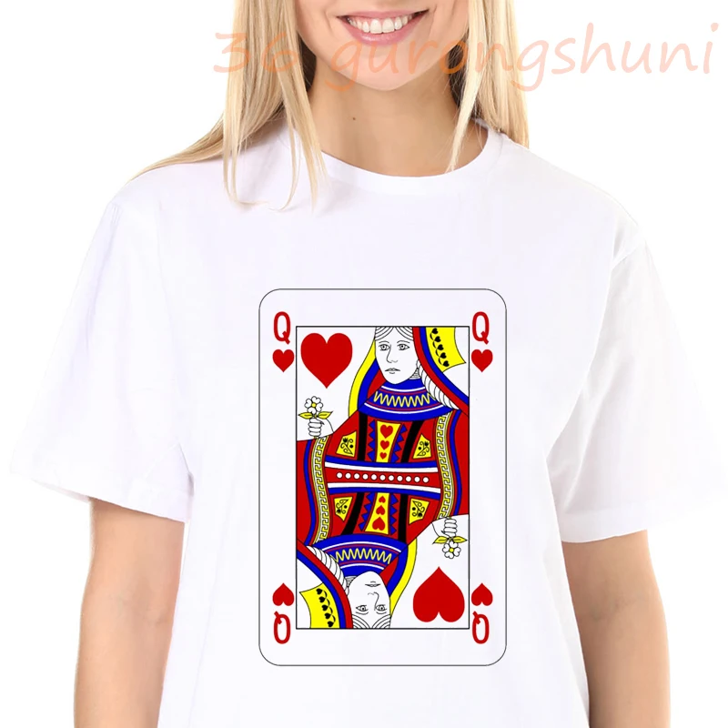 Футболка женская игральная с принтом сердца Q, модная смешная белая рубашка в стиле Харадзюку с коротким рукавом, в стиле ретро, для покера