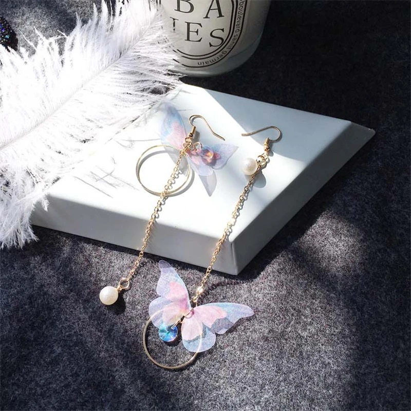 2019 корейские ювелирные изделия Ретро Асимметричные серьги-бабочки...