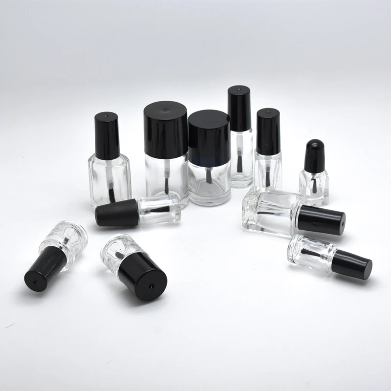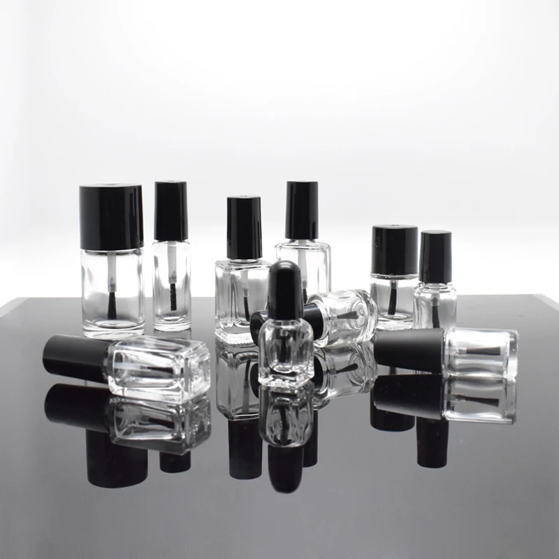 1 шт. 5 мл10 мл15 мл20 мл пустая круглая квадратная прозрачная стеклянная бутылка для ногтей с крышкой для кистей клей-краска контейнеры для дизайна ногтей флаконы