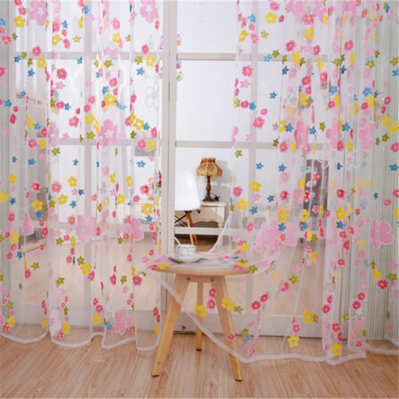 Занавески для девочек, спальни, кухни, тюлевые занавески с яркими цветами розового цвета, оконная сетка, вуаль для детской, гостиной