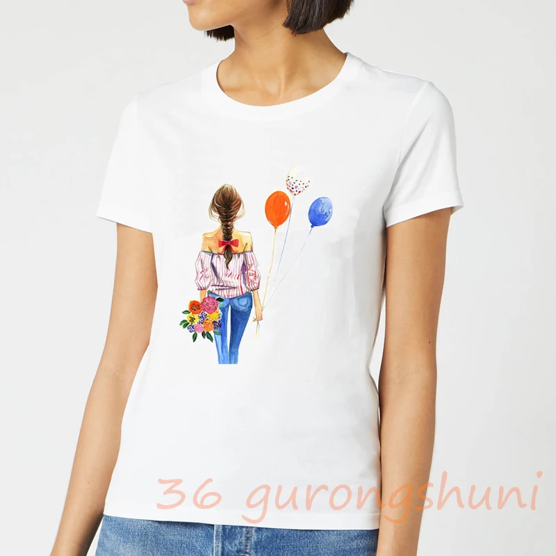 Акварельное Искусство девушки Графический Тройник печать футболка воздушный шар Футболка kpop футболка Женские топы гранж Эстетическая одежда дропшиппинг белая футболки женские