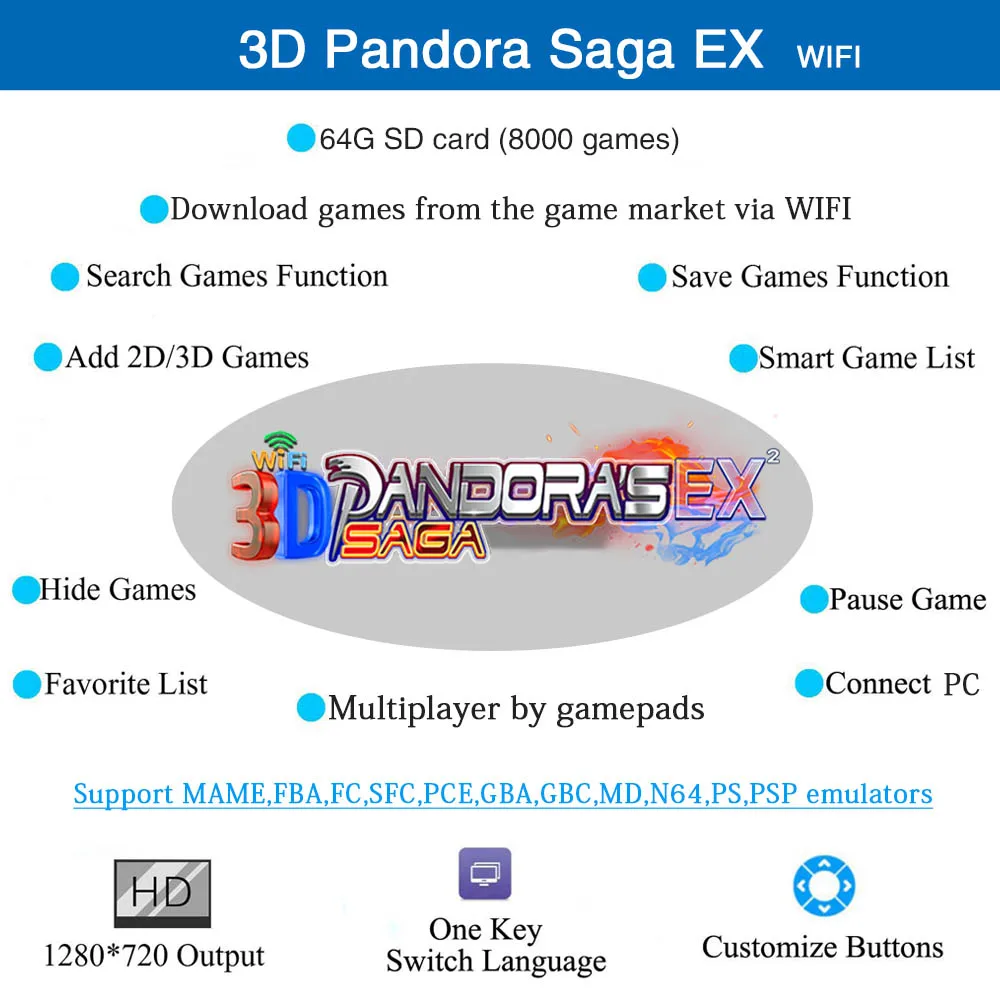 3d-пандора Сага Box EX 8000 в 1, Wi-Fi, комплект сделай сам, 2 игрока, аркадная игровая консоль, бартоп, 8 каналов, джойстик, переключатель, кнопка типа