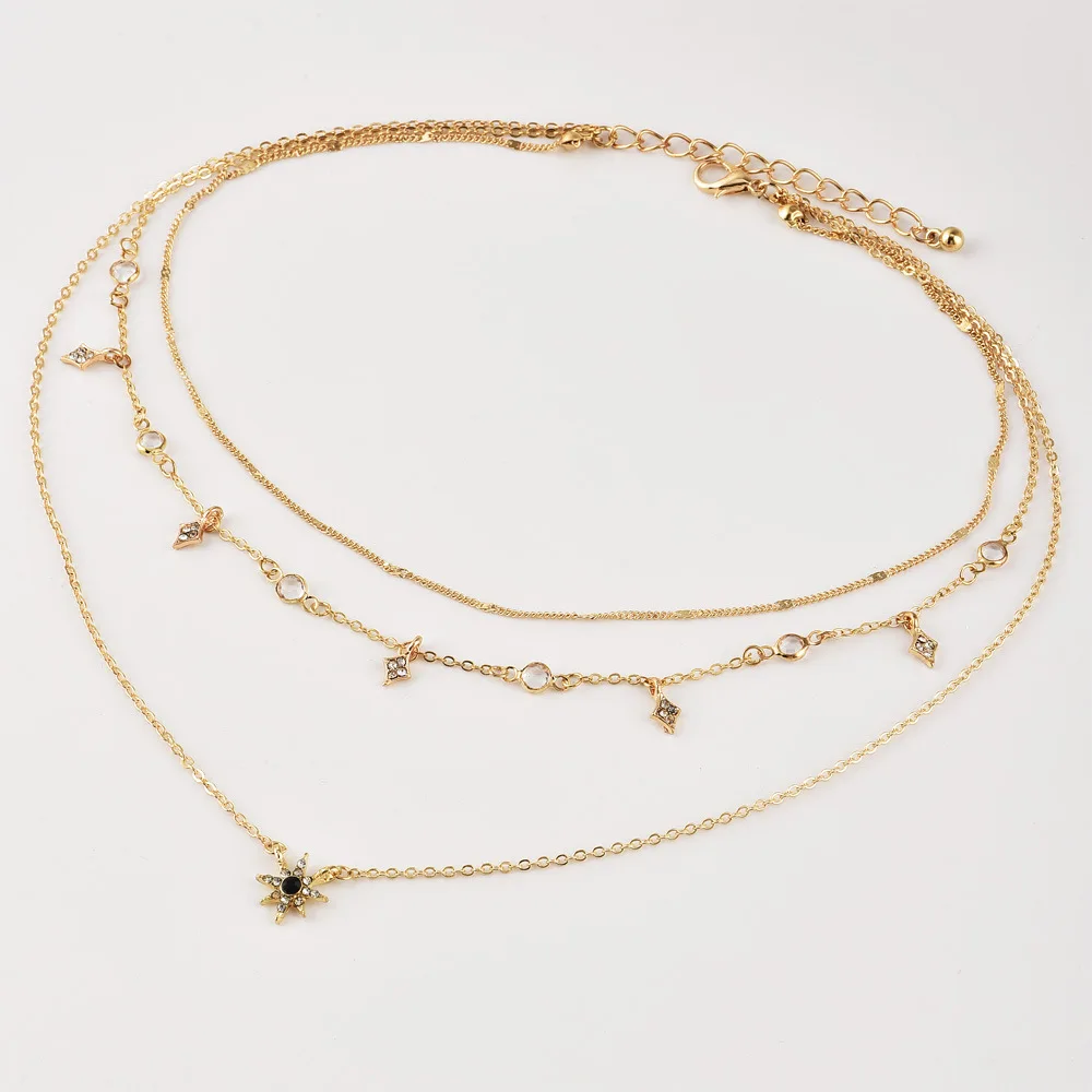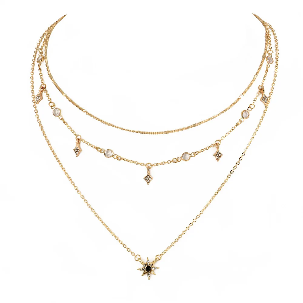 Изысканная Женская мода звезды Солнце бисер Кристалл трехслойная зо...