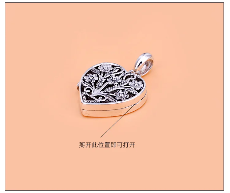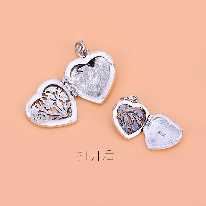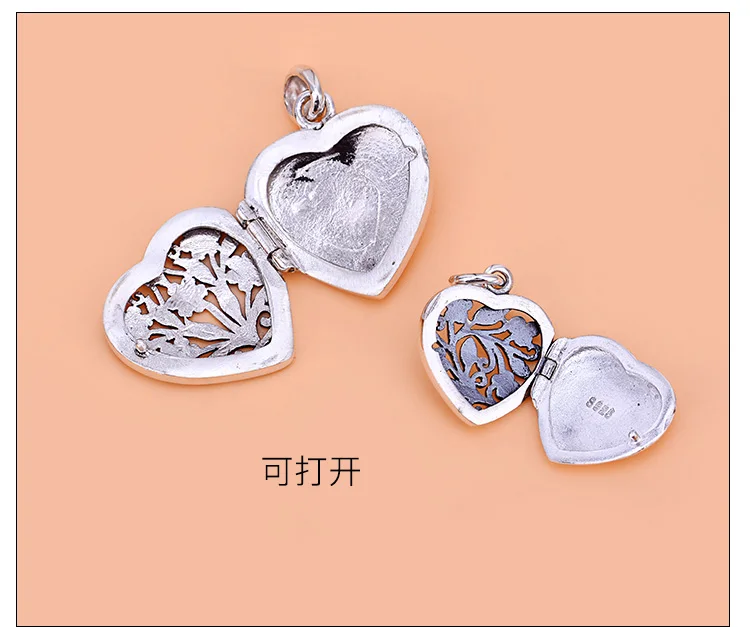Ожерелье из стерлингового серебра S925 может открывать полая саше, форма сердца может положить фотографии, кулон может быть отправлен подруге, Малый дизайн