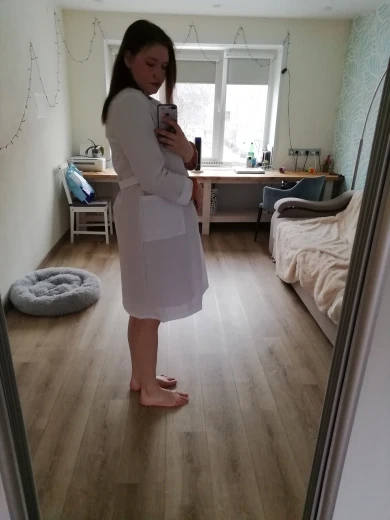 Посылка шла до Кемерово 8 дней. На свои параметры 106-92-110 взяла 52/54, все подошло, нигде не жмёт. Хороший халат как на 1 курс института, так и на работу. Рекомендую к заказу. Здесь по крайней мере адекватные цены и быстрая доставка