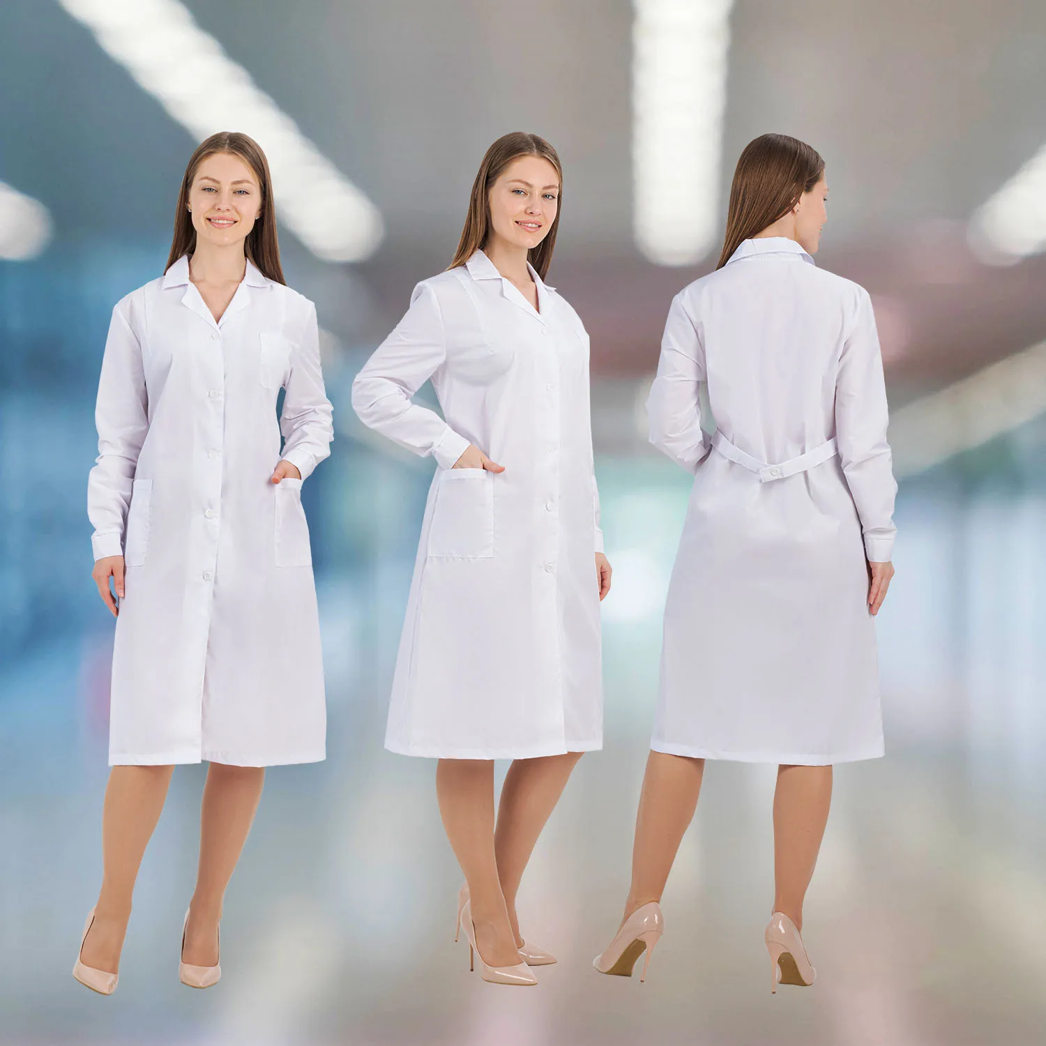 Женский медицинский халат IVUNIFORMA Классика Белый из ТиСи, для врача, ветеринара, санитара, кухонный работник
