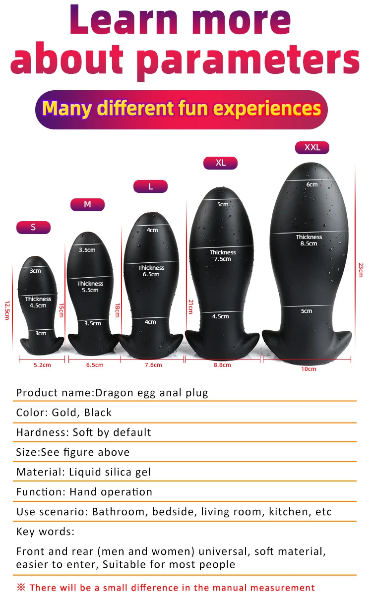 Штуковина конечно очень классная... Брал в трех размерах, и собираюсь еще взять четвертую. Вот почему: размер XXXL - вставить очень сложно, но когда наконец-то она в тебе, глаза вылазят на лоб от кайфа и дискомфорта одновременно, долго её в себе продержать невозможно даже в максимально комфортных условиях, выталкиваешь через минуту кайфа. XXL - вставляется попроще, ощущения почти те же, и так же, долго с ней внутри не вытерпишь. XL - вставляется довольно легко, ощущения послабже, с ней уже можно даже ходить и весьма продолжительное время, но вот сидеть тяжеловато. Поэтому еще хочу просто L размер, чтобы с ней можно было на постоянку.