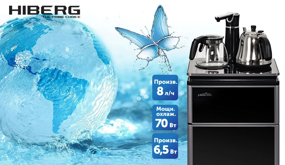 Кулер диспенсер для воды HIBERG F-91FGY с нижней загрузкой бутыли и...