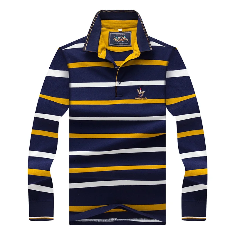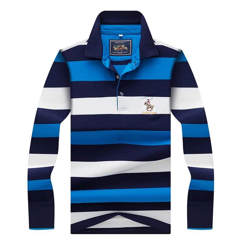 Мужская рубашка-поло в полоску, с длинным рукавом, размеры до 3XL