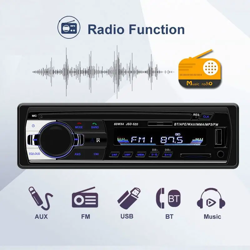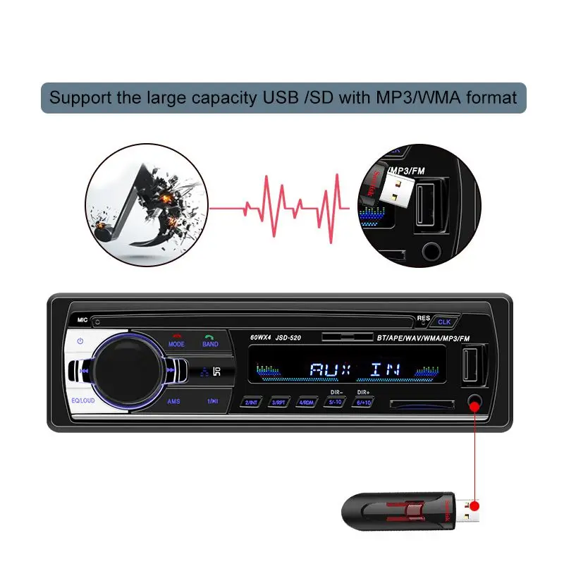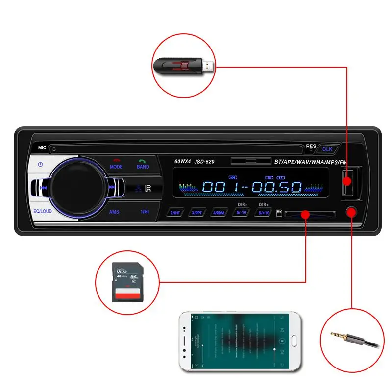 Автомобильное радио JSD520, 12 В, стерео, FM, MP3, аудиоплеер, USBSD, MMC