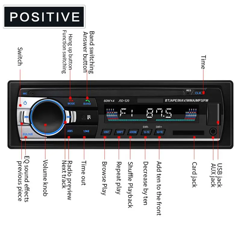 Новый JSD520 12 В автомагнитолы стерео FM MP3 аудио плеер Sup порт Bluetooth телефон с USB/SD MMC порт Автомобильная электроника