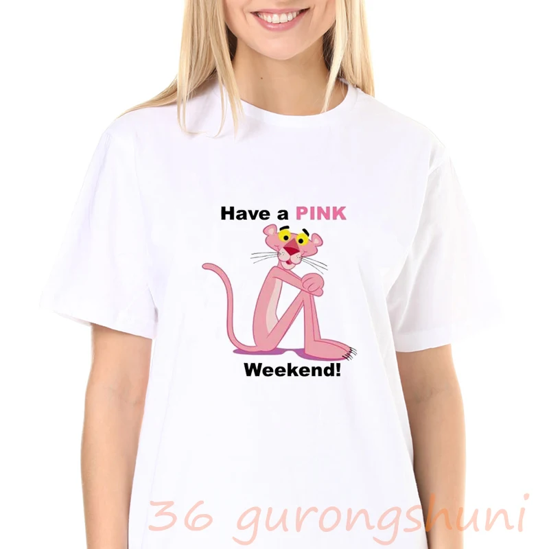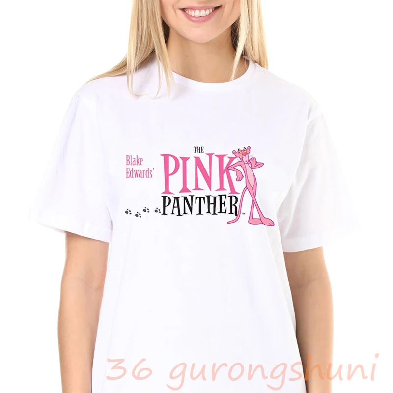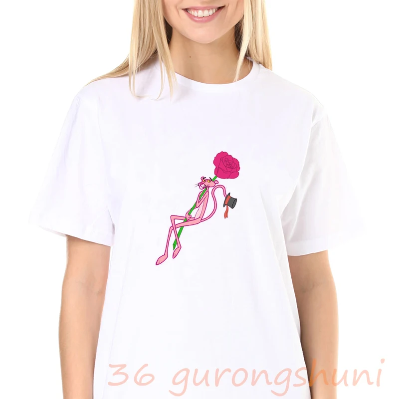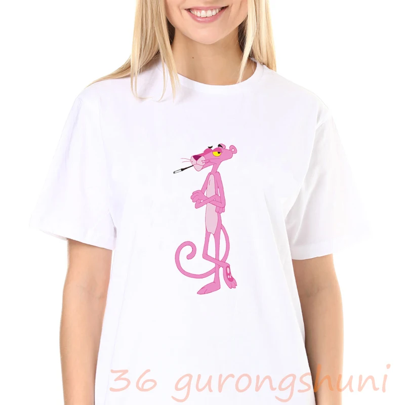 Графические белая футболки женские, топы, футболки, Готическая кавайная Розовая пантера, футболка, женская футболка, аниме, корейский стиль, винтажная одежда, 2020, Прямая поставка