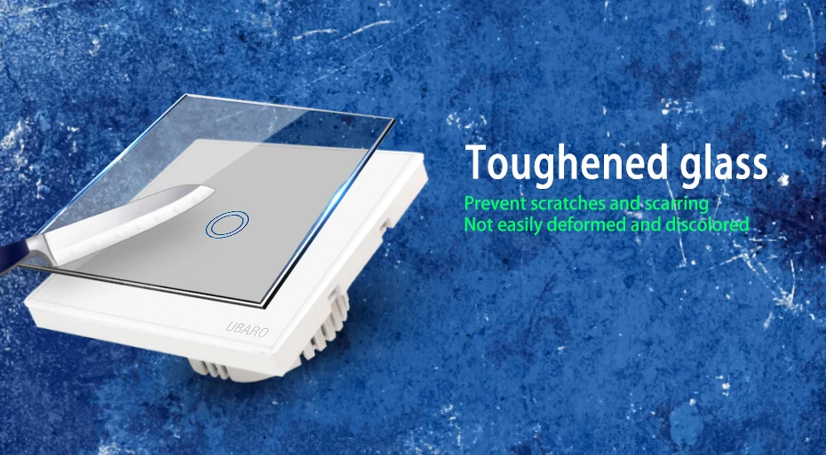 Сенсорный выключатель UBARO для ЕСВеликобритании, белая панель из закаленного стекла, настенный Электрический датчик, светодиодный индикатор, кнопка дисплея 220 В