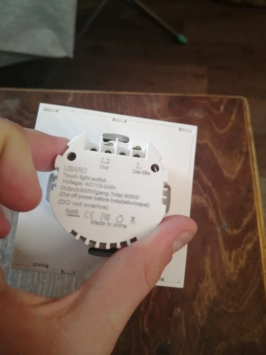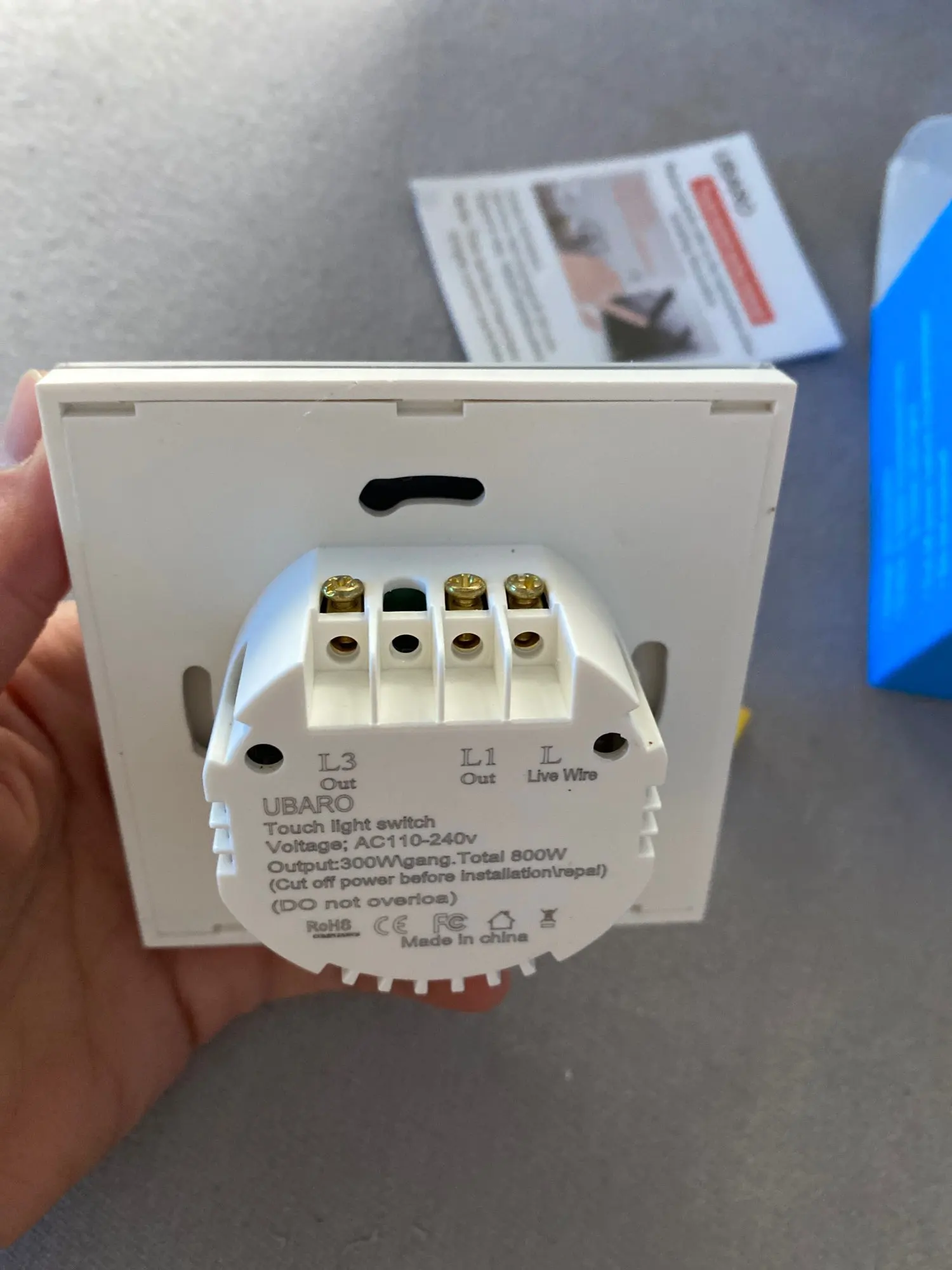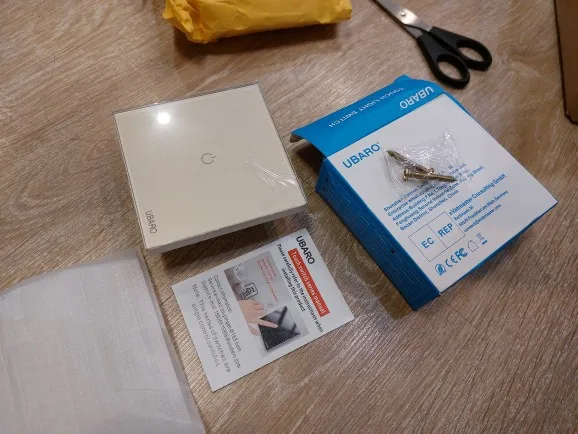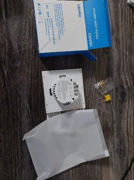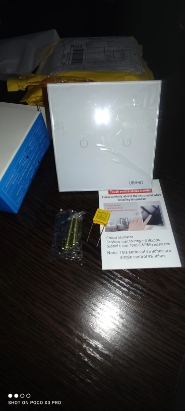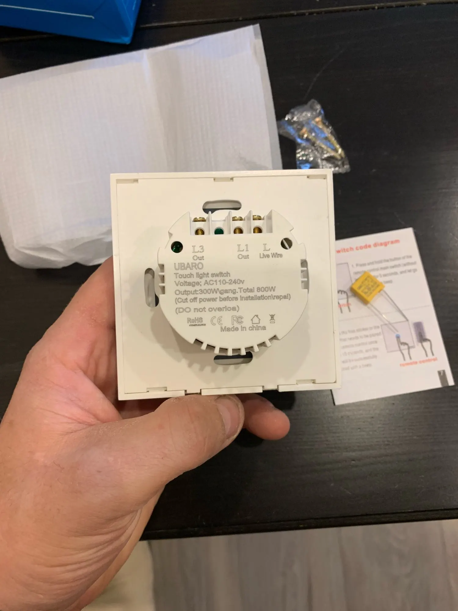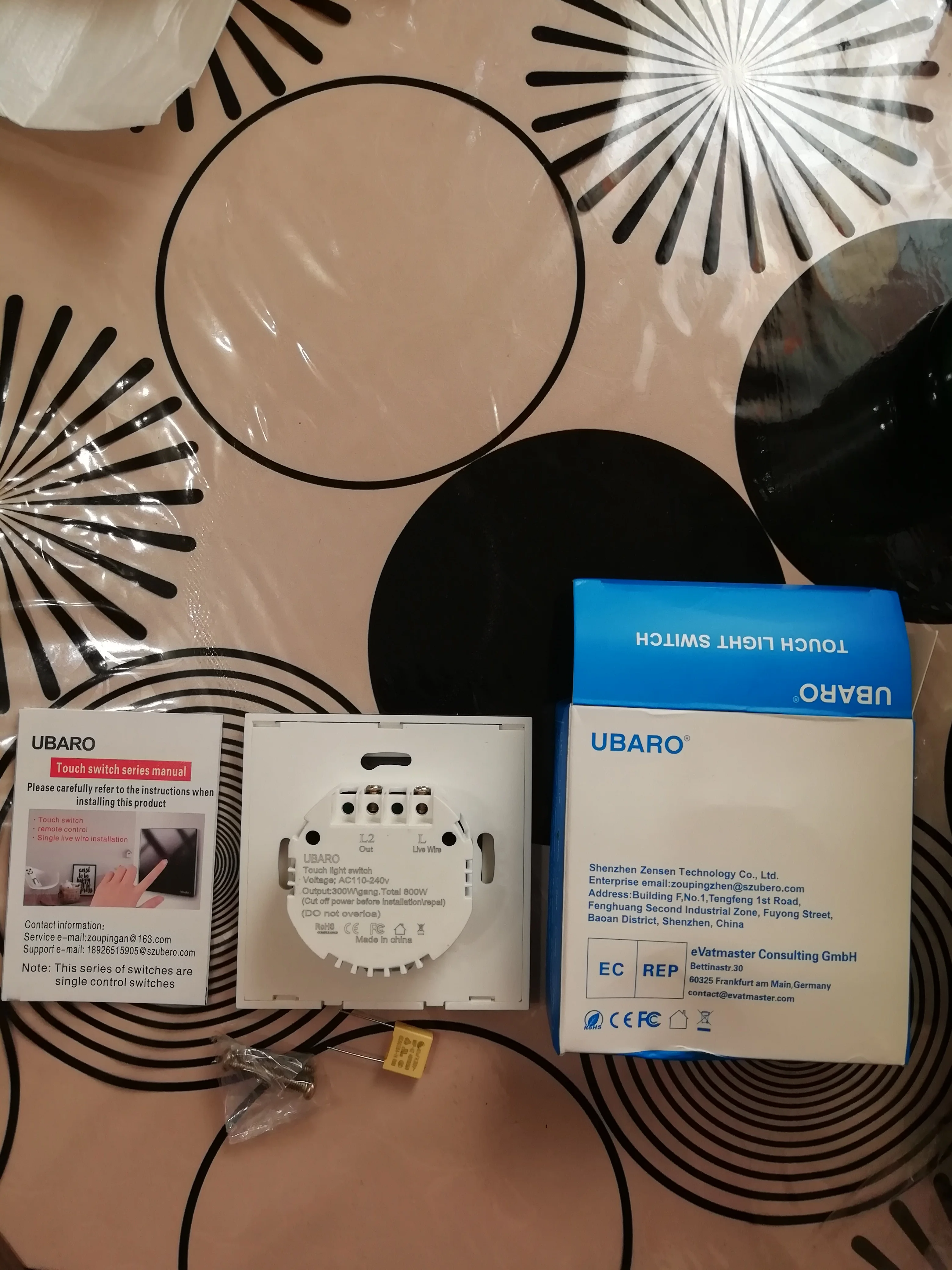 Посылка пришла помятая, выключатели целые. Отлично работают, подходит для нашего стандартного подразетника. Чтобы снять крышку, нужно еë отщëлкнуть снизу через специальные пазы. В комплекте конденсатор, инструкция и два винтика. Оказывается его можно подключить к пульту от люстры.