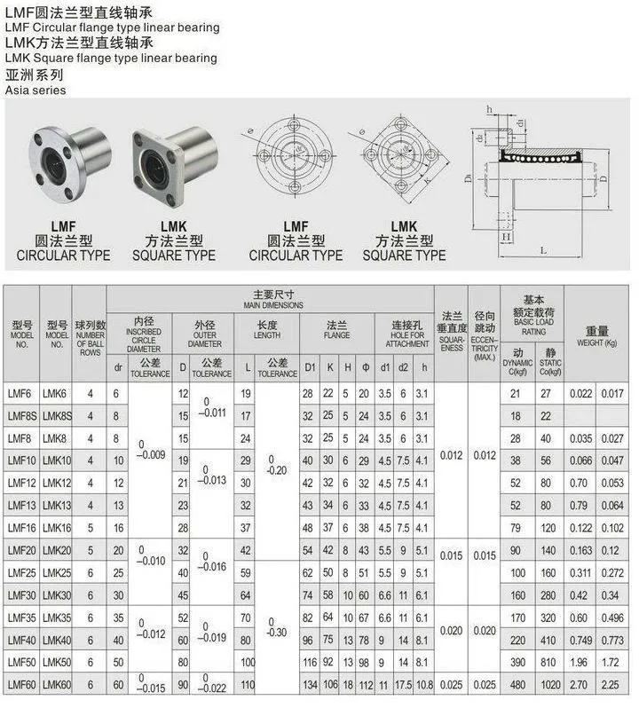 Квадратный фланцевый линейный подшипник LMK, шарикоподшипник LMK6UU...