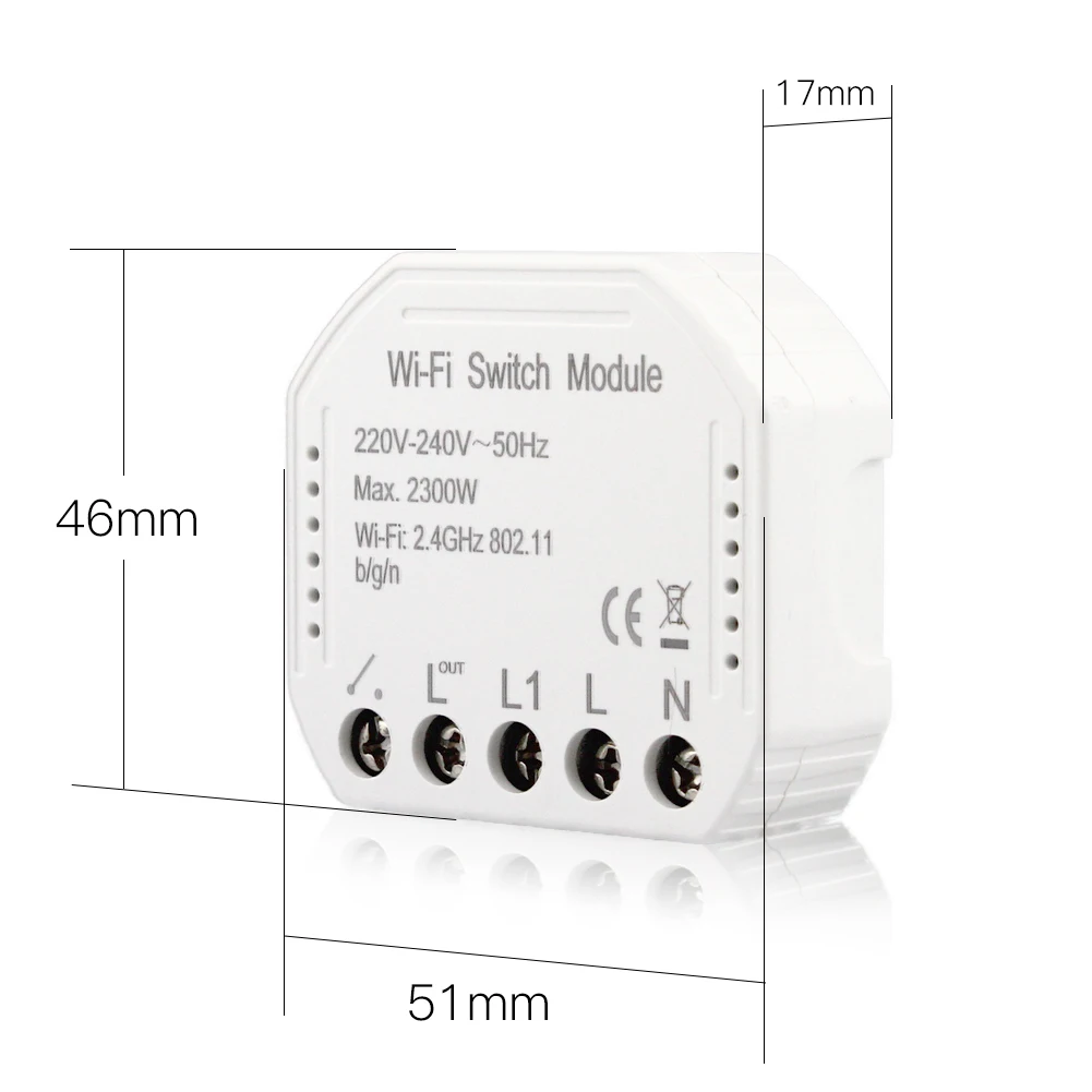 Основная особенность:1. Легко заменить ваш традиционный переключатель, чтобы сделать его умнымМожет сделать ваш существует 2 позиционный переключатель smart, кроме того, просто установите 1 "сделай сам" умным выключателем, костюм для ЕС/Великобритания коробка переключателя, просим вас подтверждать размеры перед размещением заказа.2. Беспроводное управление беспроводным управлением огнями или устройствами голосом или автоматизацией с помощью вашего смартфона и помощников Alexa или Google.3. Напряжение переменного тока 220-250vac / 10 ампер Максимальная нагрузка DIY модуль переключателя может управлять широким диапазоном света и приборов4. Управление Wi-Fi через ваш мобильный телефон 2,4G сетей обеспечивает необходимое подключение к модулю DIY Switch без необходимости отдельного концентратора.5. Использование популярного приложения smart life/Tuya на базе android / ios позволяет полностью контролировать ваши огни или совместимые устройства. Несколько вариантов программы позволяют спланировать точное время для включения света/вентиляторов/и т. Д. Включение/выключение автоматически6. Дайте вашим устройствам максимальную мощность включения/выключения smart Makeup, просто подключите этот модуль Do-It-Yourself между вашим устройством и источником питания, чтобы преобразовать большинство любых совместимых продуктов в умный.Основные характеристики:Входное напряжение: 220 В ~ 240 В/50 ГцПроводка: прямой провод и нейтральный проводМаксимальная мощность нагрузки: 2300 ВтWi-Fi, Стандартный: 2,4 ГГц 802,11 b/g/nНазвание приложения: Tuya Smart/Smart LifeСрок работы: 100000 во время проведения операцииРазмеры: (0,7*1,86*2,03) дюйма