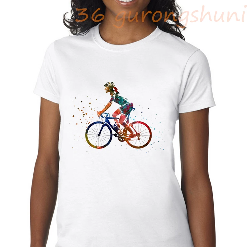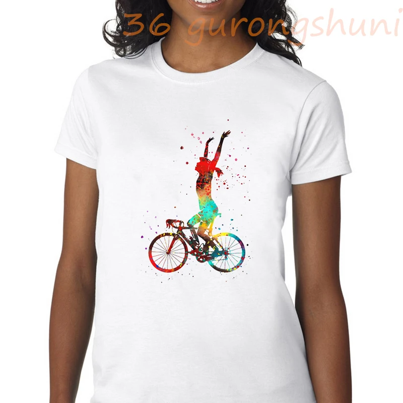 Акварельные Графические белая футболки женские, топы, экстремальные виды спорта, футболки, готический кавайный велосипед, футболка, женская футболка, Корейская винтажная одежда, гимнастика