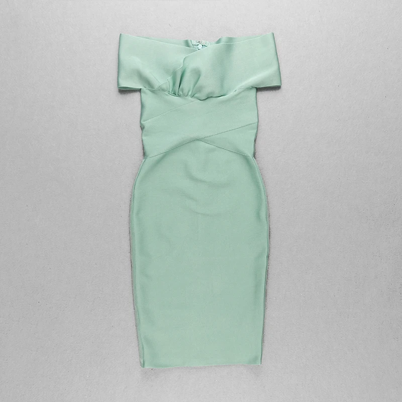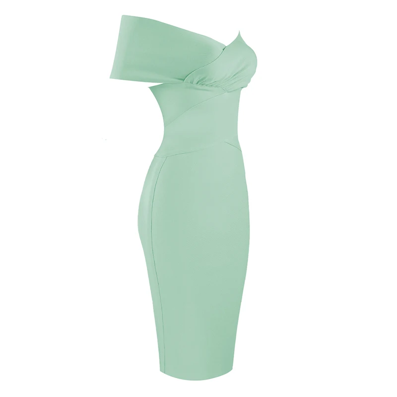 Женское облегающее вечернее платье с открытыми плечами, мятно-зелен...