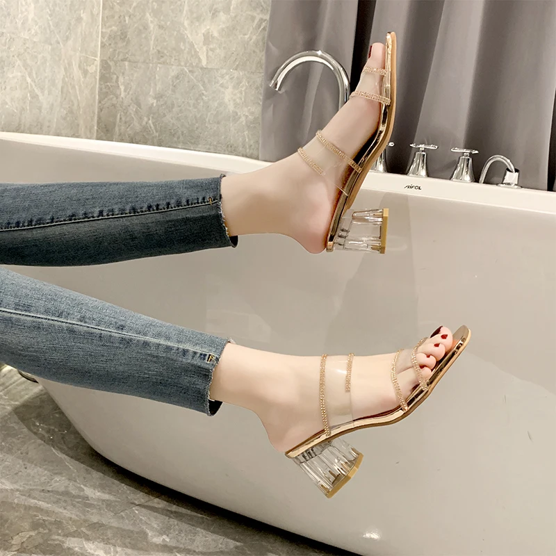 Сандалии женские прозрачные на высоком каблуке, модные босоножки с ...