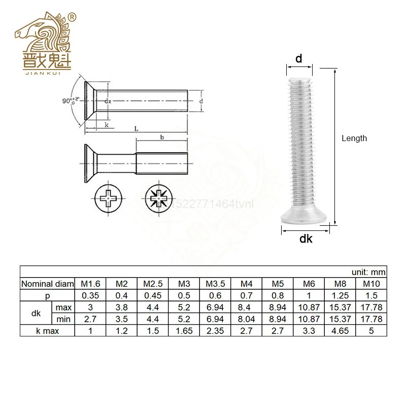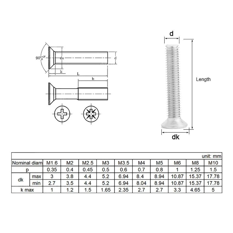 Винты Phillips из нержавеющей стали с плоской головкой и потайной головкой, 2050 шт., M1-M6 DIN965 GB819 304