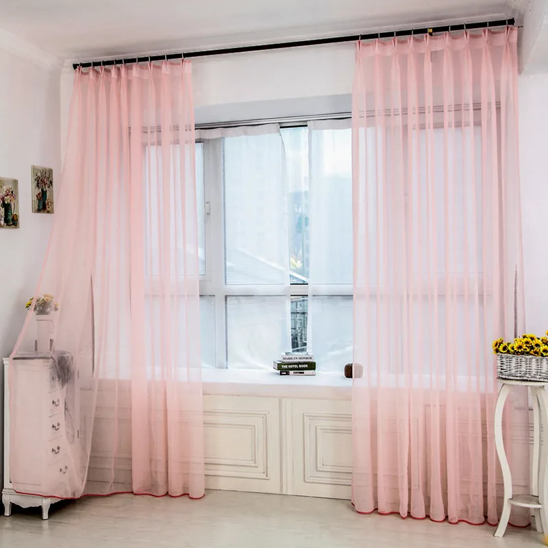 Розовая прозрачная занавеска s для спальни, кухни, тюлевые занавеск...