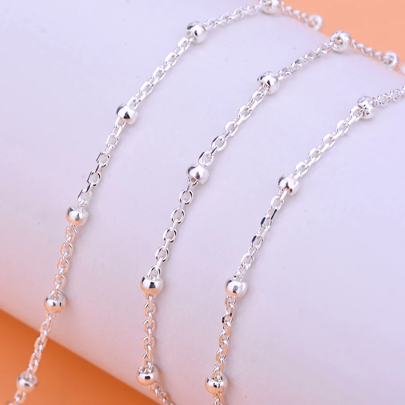 Цепочка с крестом из стерлингового серебра S925 пробы, цепочка с бусинами ручной работы сделай сам, полуобработанный браслет, ожерелье на лодыжку, материал цепочки