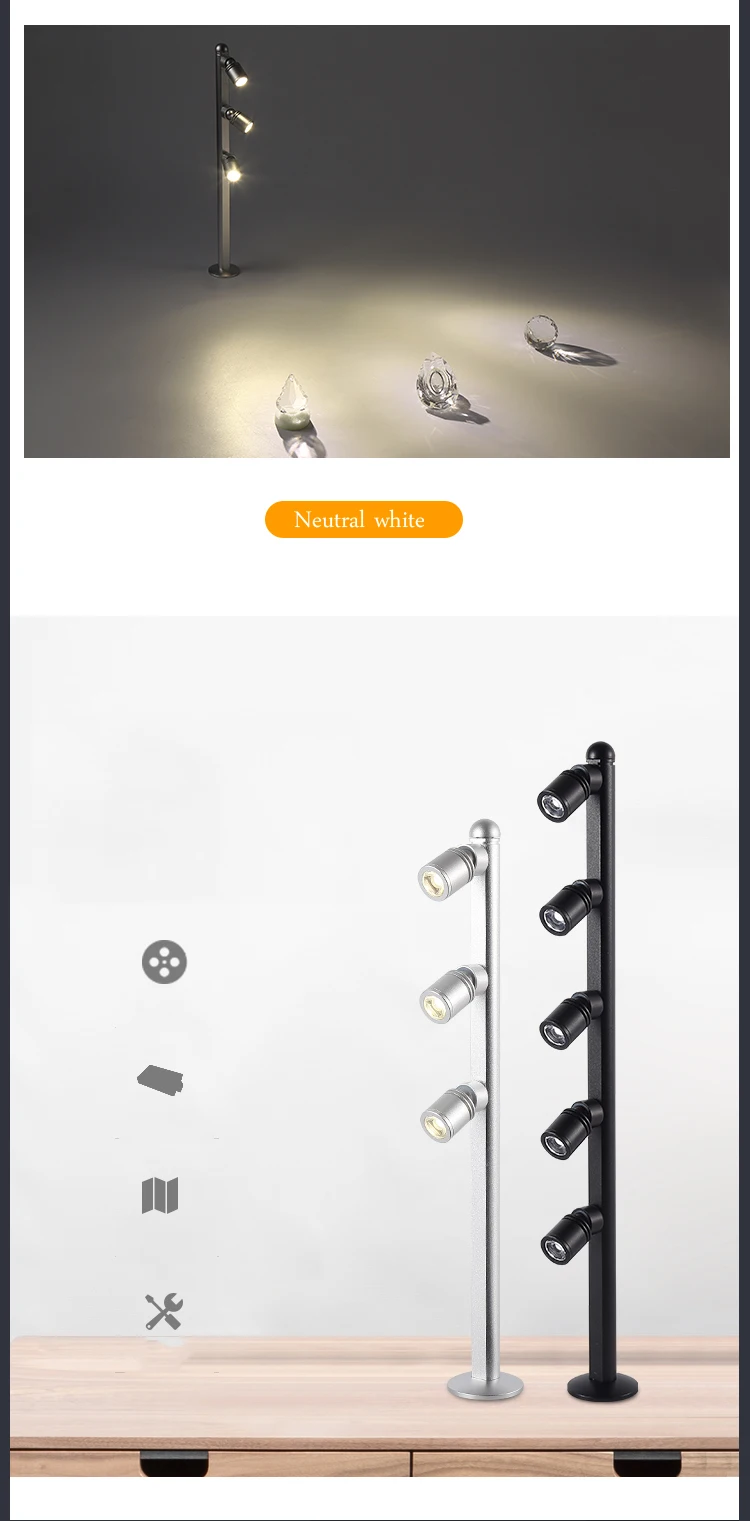 Светодиодный прожектор, настольная подставка, столб-лампа, Точечный светильник для ювелирных изделий, магазина телефонов, демонстрационный чехол, серебристый, черный, 220 В переменного тока