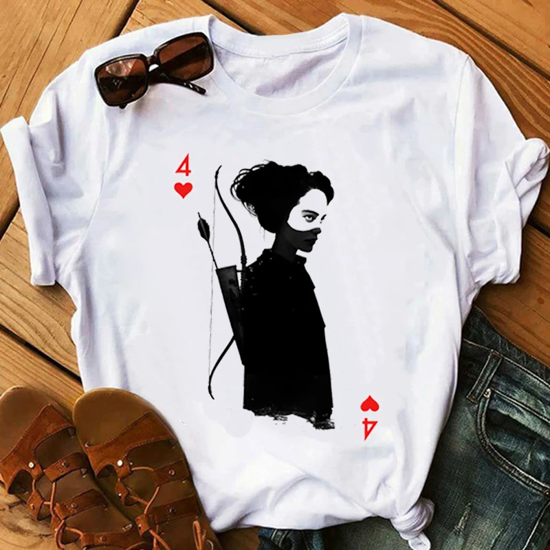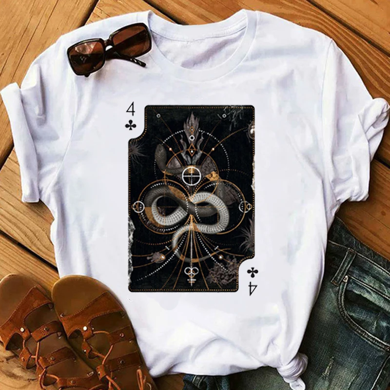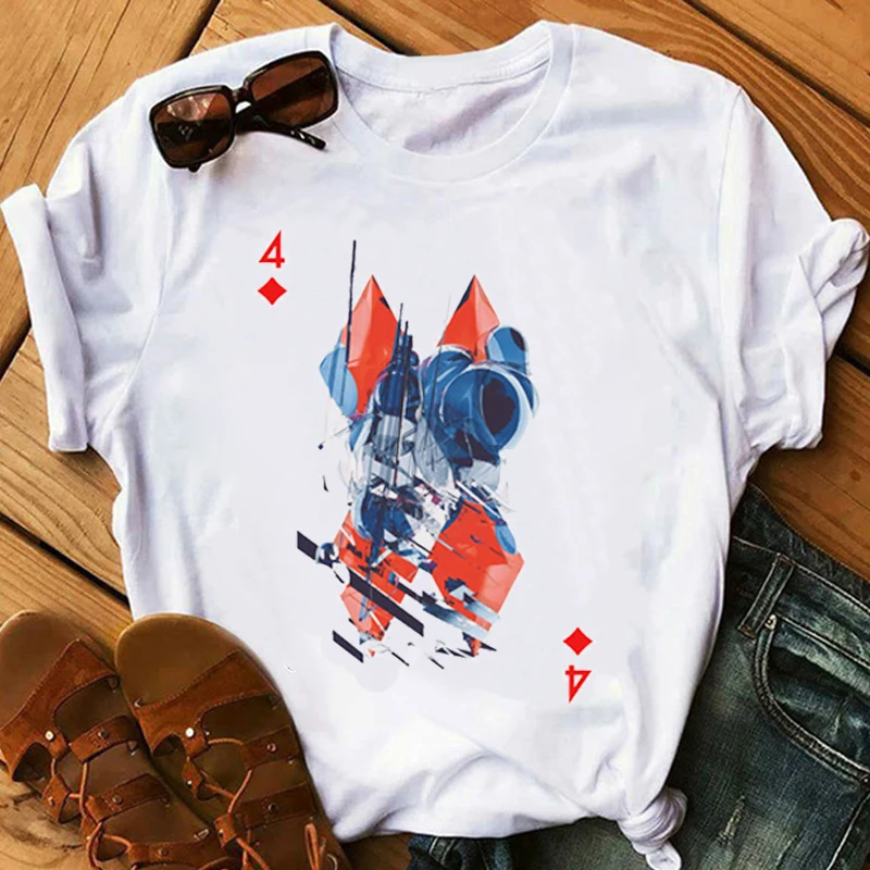 Топы, графические футболки с игральными картами, белая футболки женские, забавная футболка с покерным номером 4, футболка с принтом карты Гота, Женская Эстетическая одежда, уличная одежда