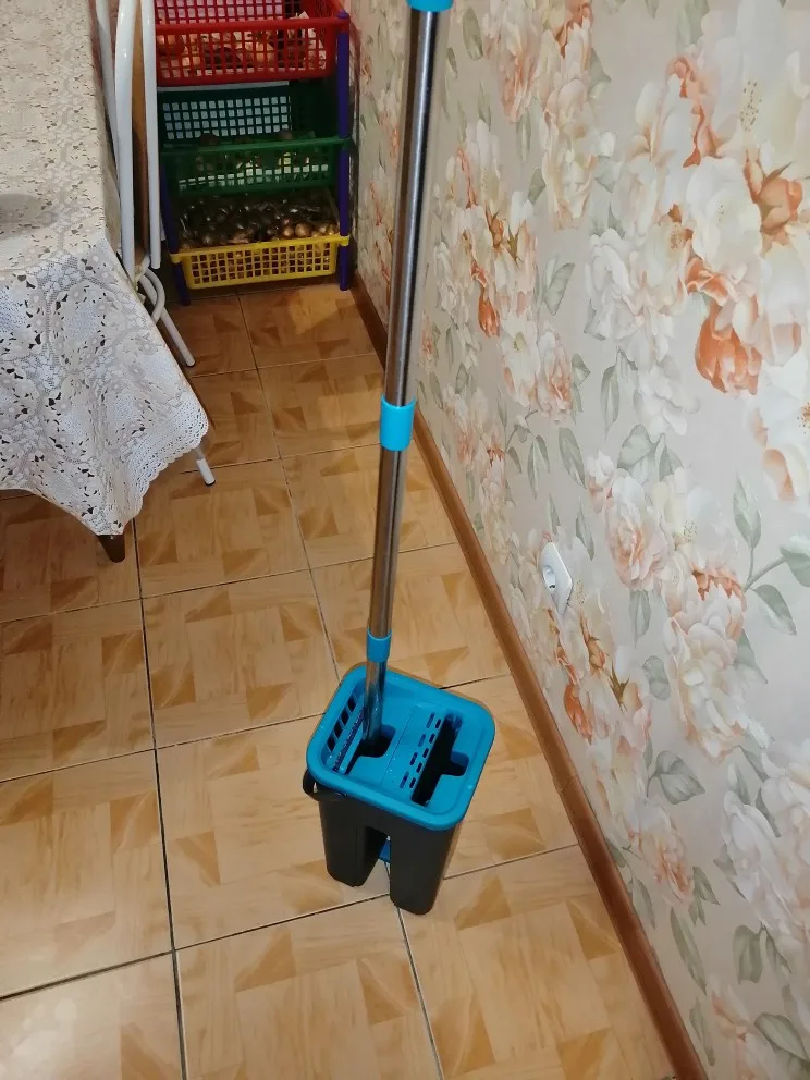 заказали 2 ведра , оба целые , доставка Пикпоинт в терминал, работает . Вот думаю, чтоб воду слить, нужно каждый раз снимать "крышку-накладку" , мусор в виде шерсти снимать руками придётся, хорошо если сначало пропылесосили или подмели (робот пылесос), а потом влажную уборку сделать и углы все пройти. ручка высокая, хорошо держится в ведре швабра. ещё не определились где хранить, квартира маленькая. только одной стороной швабры можно засунуть в ведро, другая не рассчитана, защелкивается на той самой стороне , механизм внутри, из-за этого намочить с двух сторон не получится, сколько не наливай воды край будет сухой. ну и тряпка одеваться с определенной с стороны, специальные вставки.