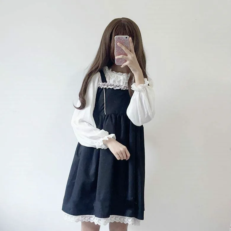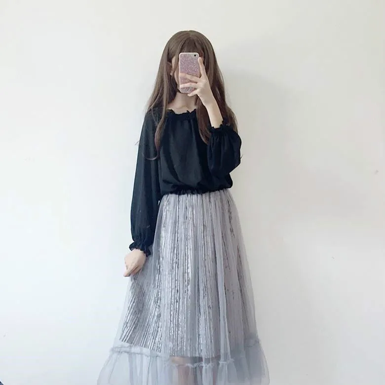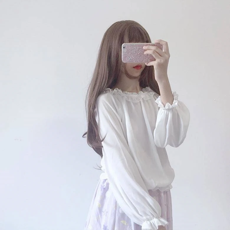 Женская шифоновая блузка, в японском стиле, с длинными рукавами-фонариками