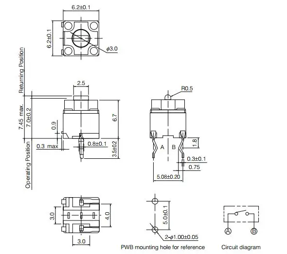 Тактовые кнопки модели EVQP0E07K производства фирмы Panasonic применяются в широком спектре радиоаппаратуры и компьютерной техники. Наиболее часто встречаются в манипуляторах типа мышь. Кнопки не ремонтопригодны, поэтому в случае выхода из строя (отсутствие контакта или, наоборот, многократная сработка в результате дребезга контактов) проще произвести замену самой кнопки.