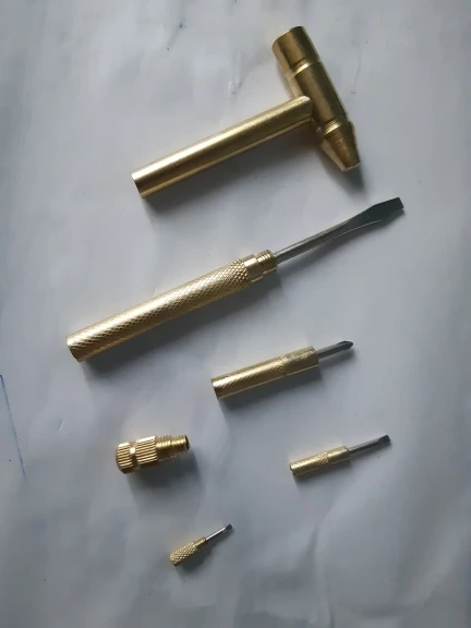 Медный маленький круглый молоток 6 в 1, многофункциональная мини-отвертка для ногтей с открывалкой для бутылок, прочный золотой цвет