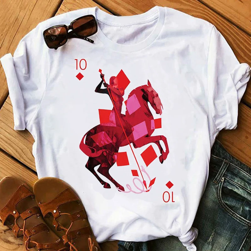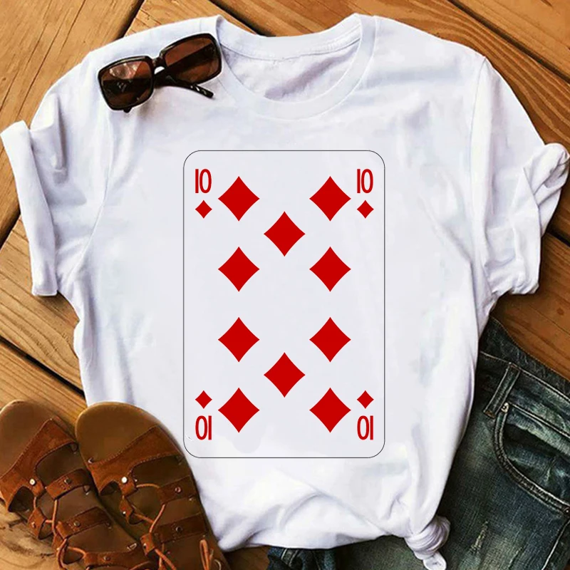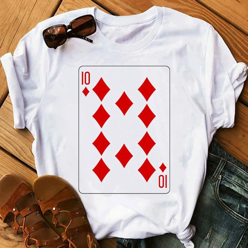 Топы, футболка с игральными картами, готические карты, алмаз 10, Винтажная футболка, женская футболка, гранж, эстетическая одежда, уличная одежда, забавный покер