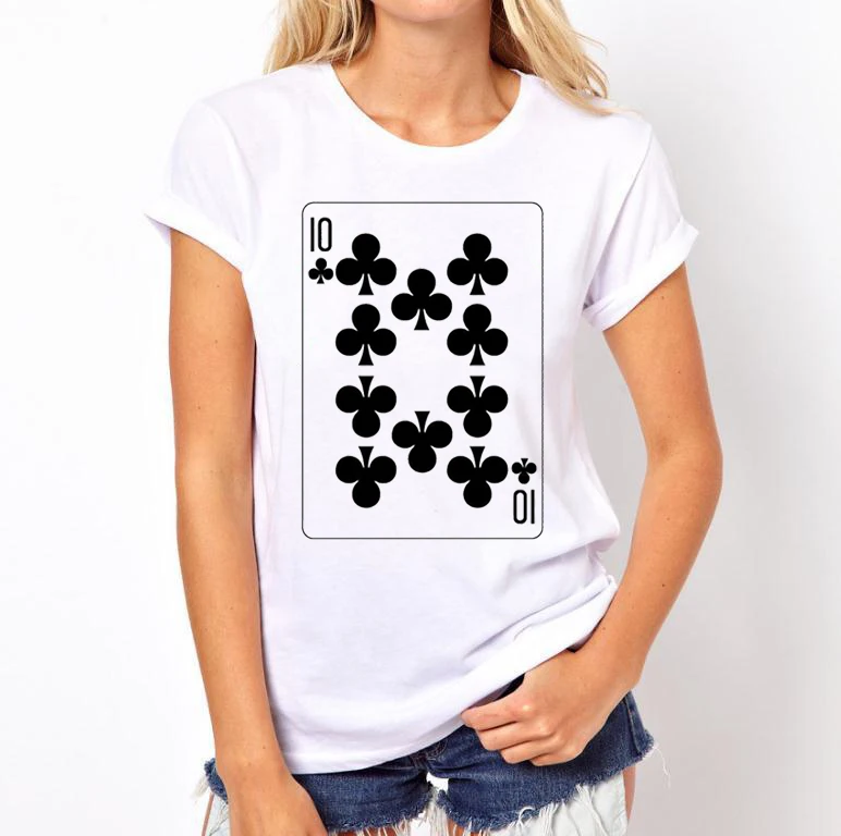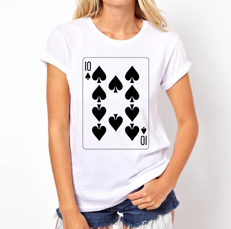 Футболки с графическим рисунком, топы, футболки для покера, игральные карты goth kawaii cards 10, женская футболка, Корейская винтажная одежда, 2020, Прямая поставка белая футболки женские