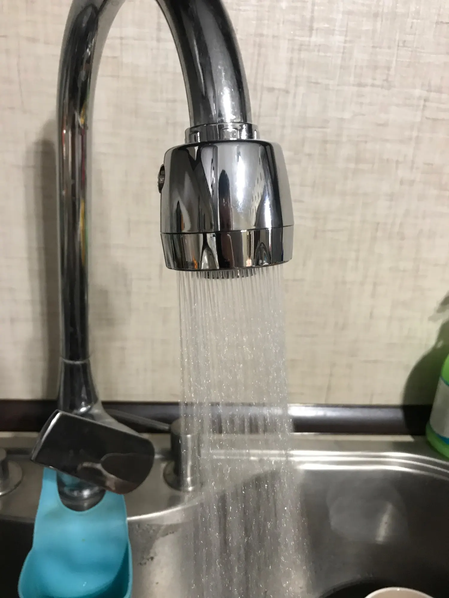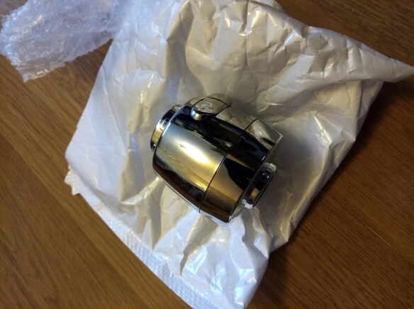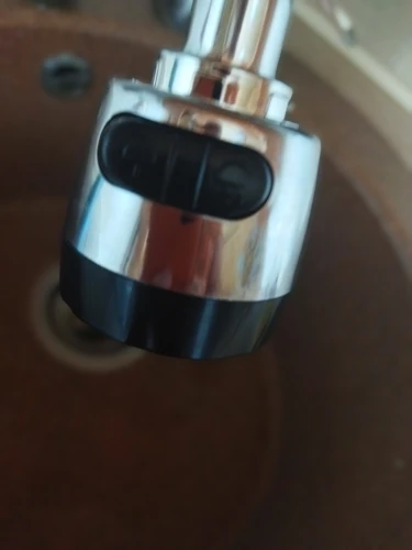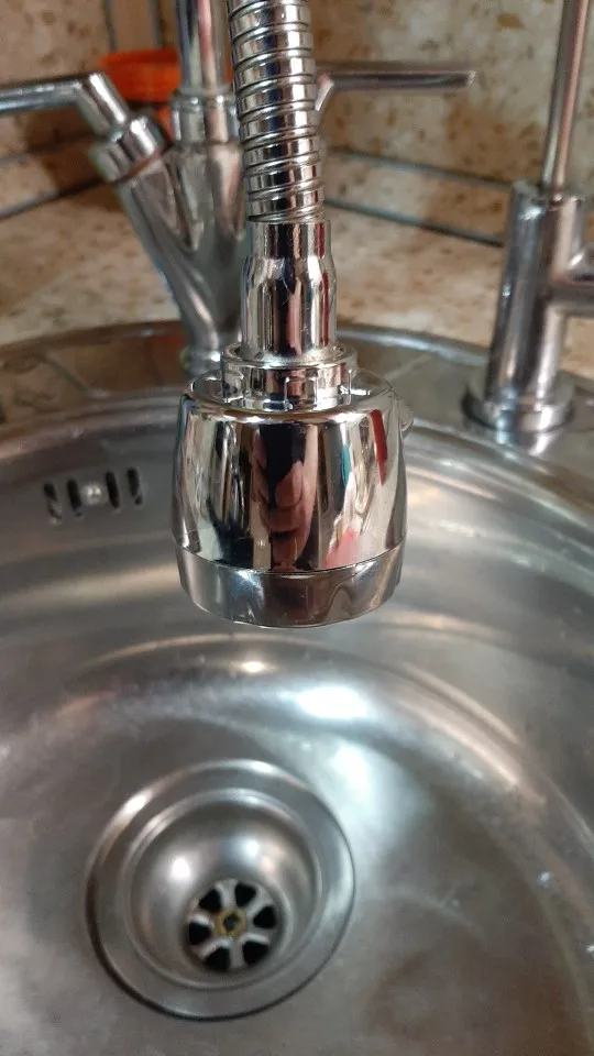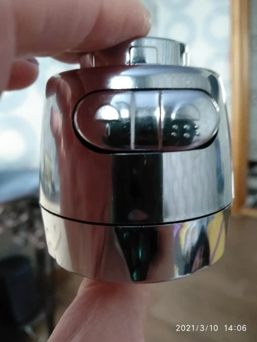 Доставлен быстро, упаковка хорошая. Кто хочет купить - обратите внимание, что этот вариант без шарнира, его невозможно поворачивать на кране. Есть варианты и с шарниром. Вещь хорошая, позволяет ещё и воду экономить. Но с шарниром удобнее.