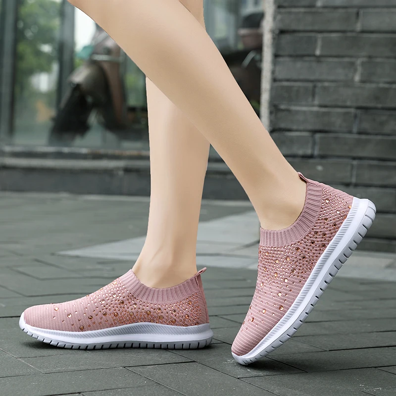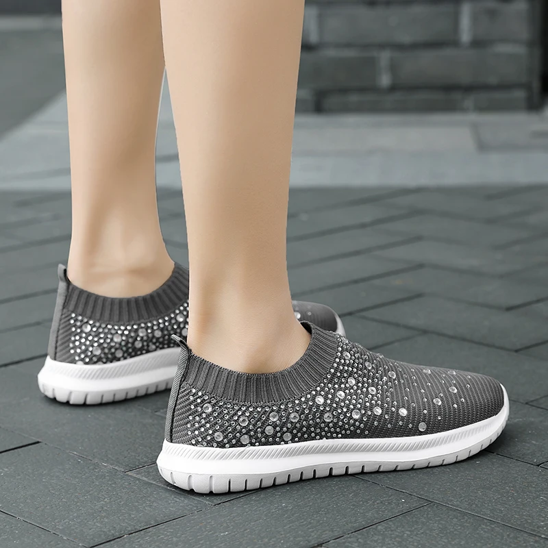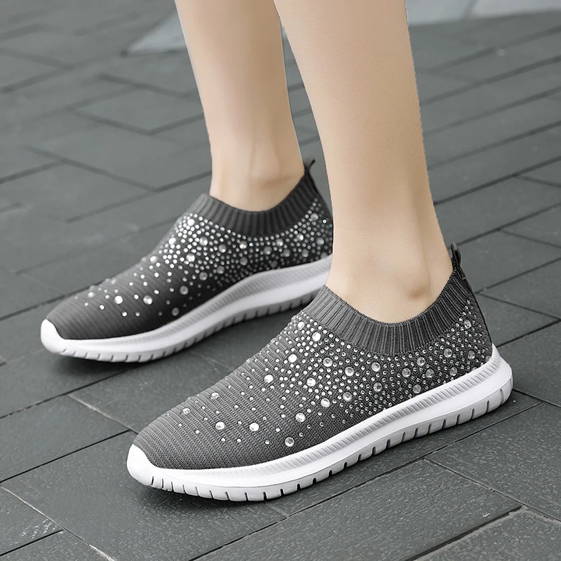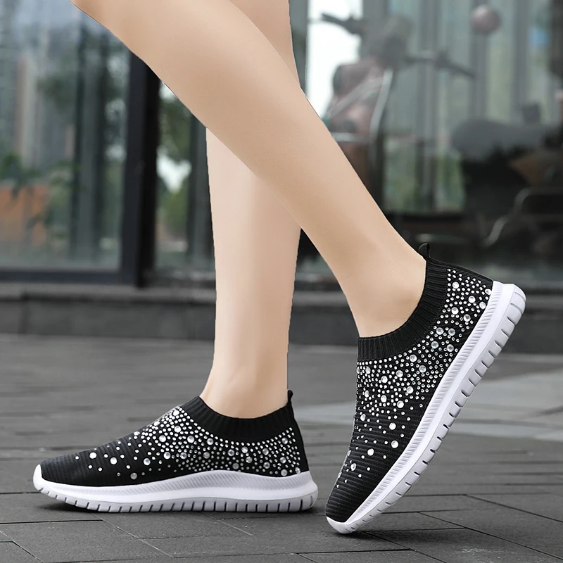 Новинка 2020, женская повседневная спортивная обувь стразы, вязаные носки, Вулканизированная обувь, женская эластичная и гладкая женская обувь