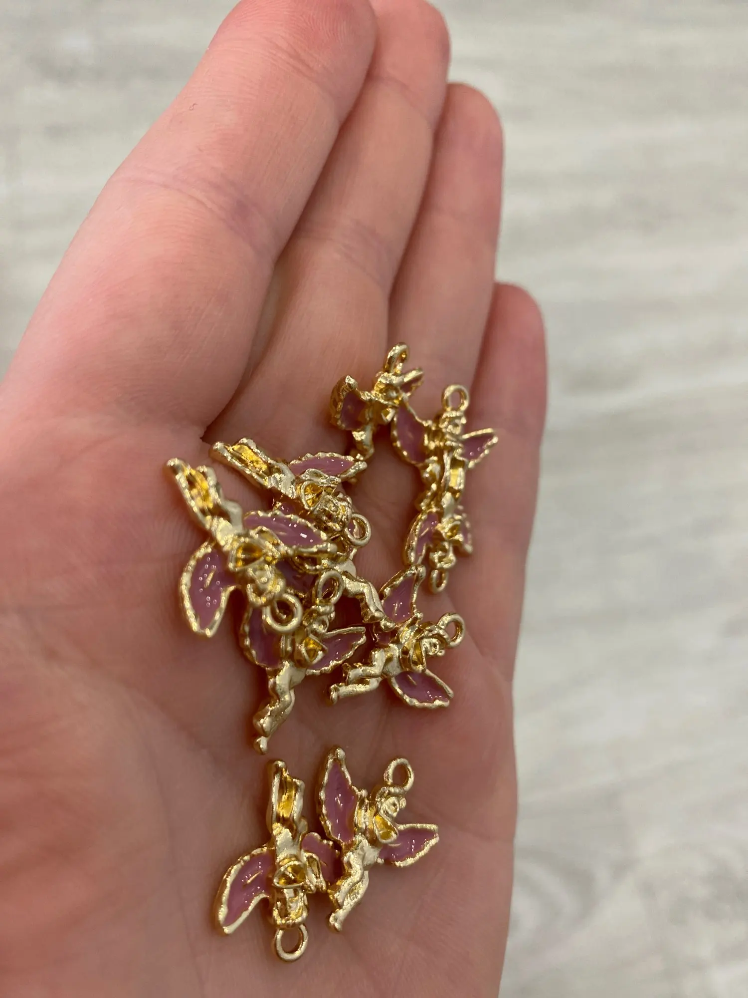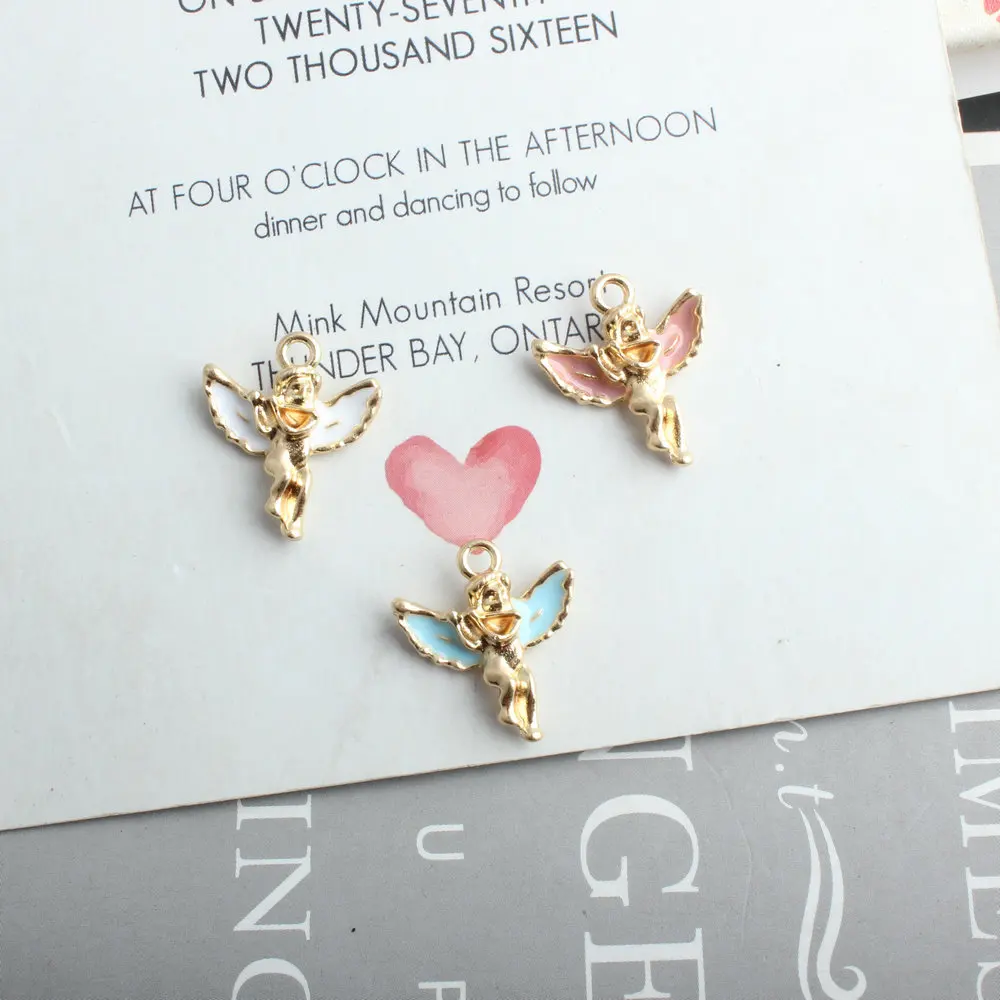 10 шт.лот, модные Рождественские Подвески Ангела для изготовления ювелирных изделий, подарок, эмаль, золотой цвет, тон, сделай сам, аксессуары для ювелирных изделий ручной работы
