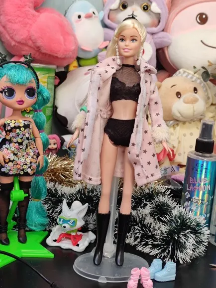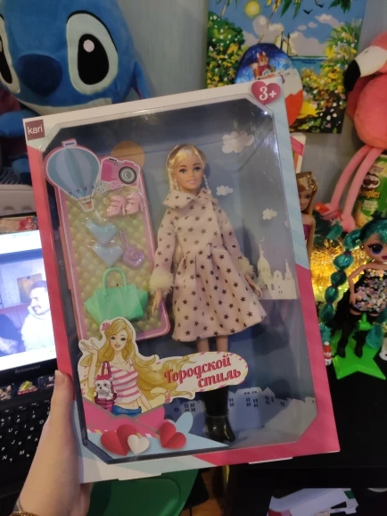 куклу взяла на распродаже за 180р, за эти деньги это подарок! под пальто она голая, белье шила сама. обувь ей велика, но зато куклам с более большой стопой подойдет, хотя на таких барби она тоже держится, но болтается. пальто хорошее, была маленькая дырочка- непрошивка, я дошила ее. прическу не разбирала, но волосы приятные. думаю прошивка не густая, но и не лысая. лицо очень милое, похоже на каноничную барби:) сумка и фотик хорошие. достаточно качественная кукла в большой красивой коробке, но с небольшими косяками, которые можно легко исправить, определенно советую, доставка 3 дня