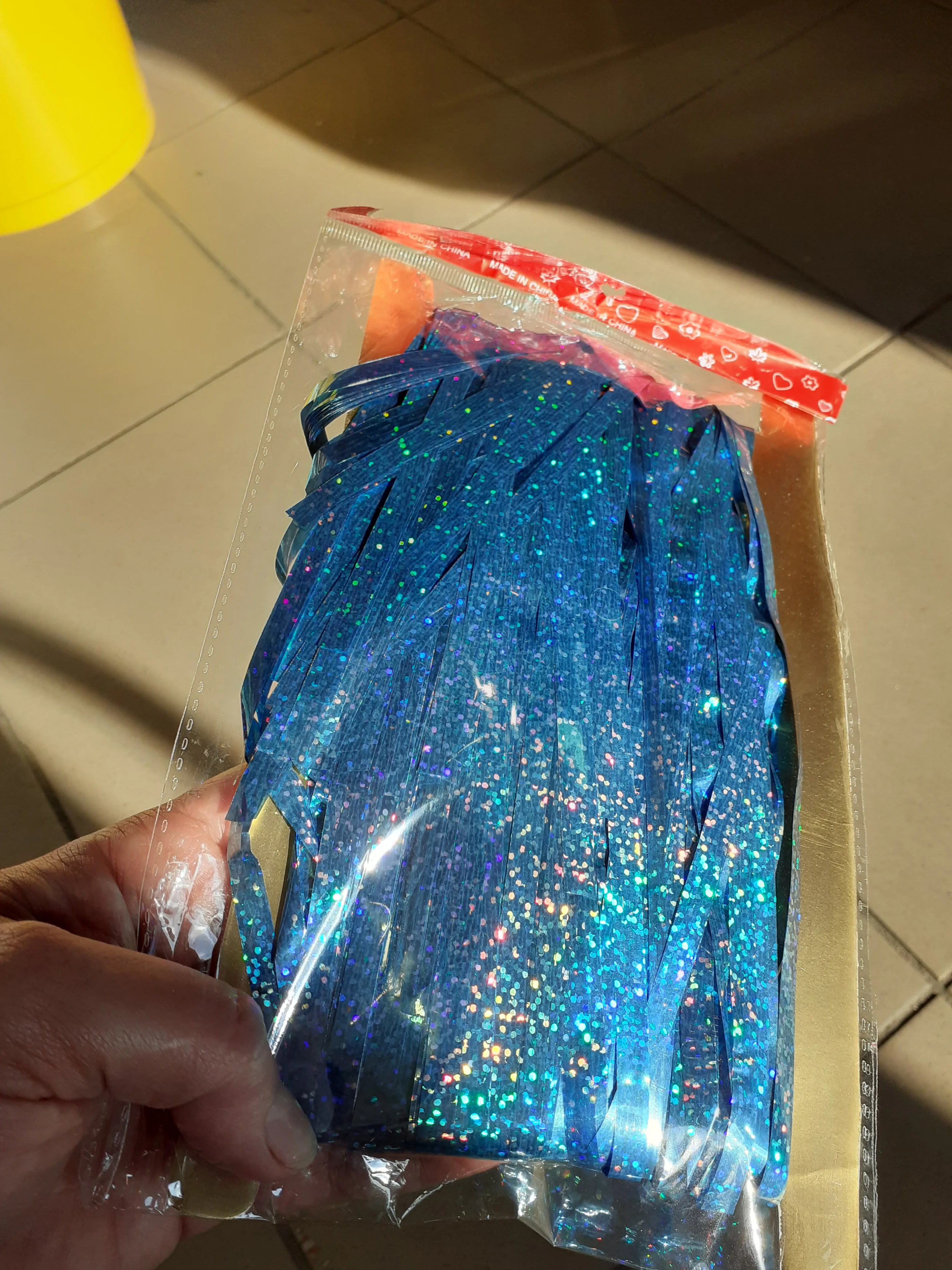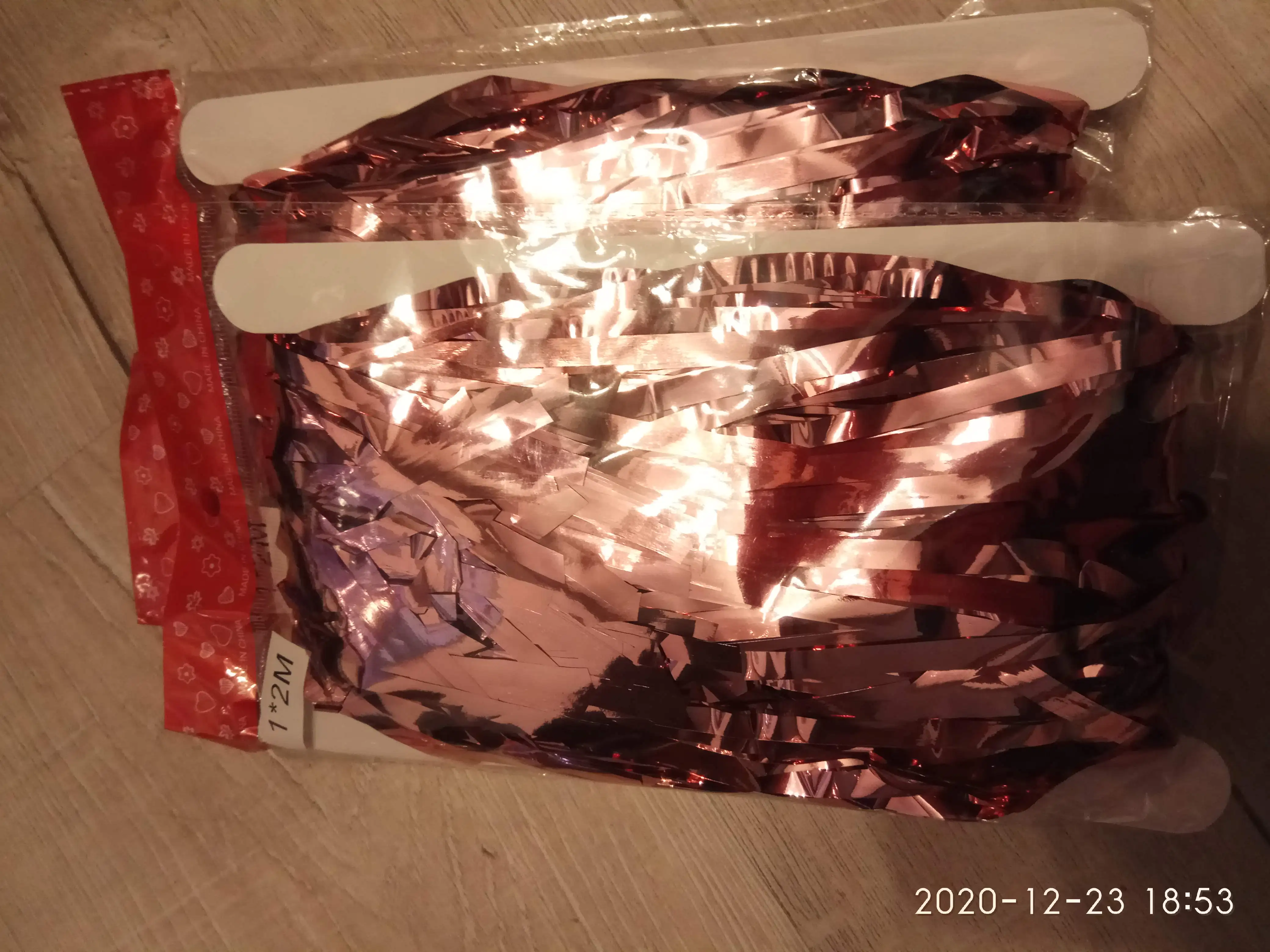 Классный дождик, блестит с обеих сторон. Правда, обращаться с ним стоит аккуратно, отрываются полосочки очень легко. Заказывала 11.11. Пришло за месяц, что очень порадовало, боялась, что не дойдёт до Н. Г.