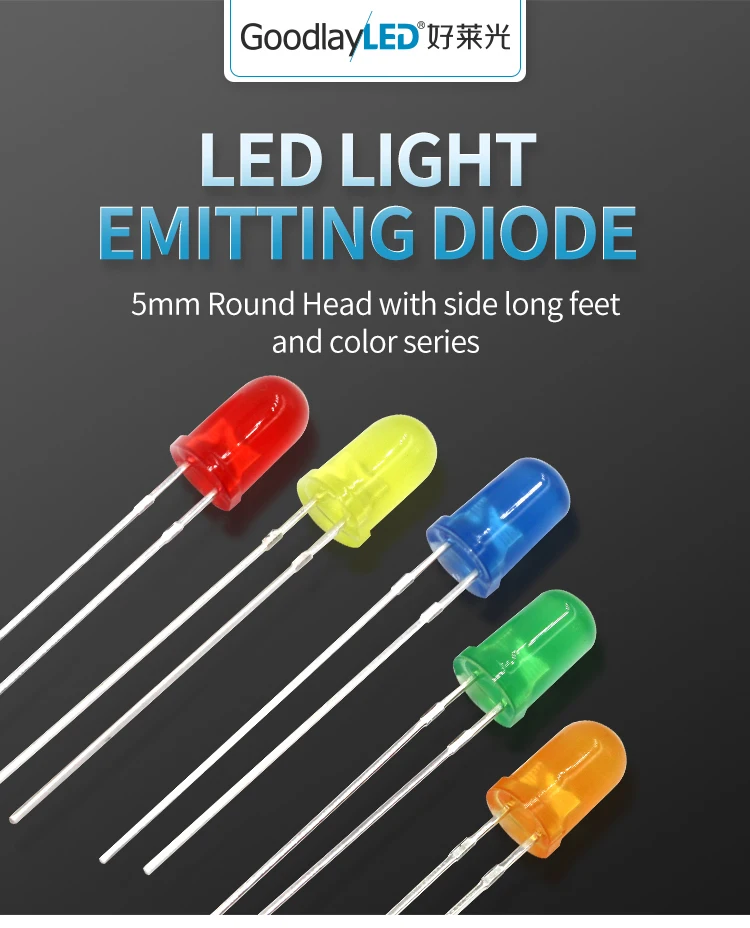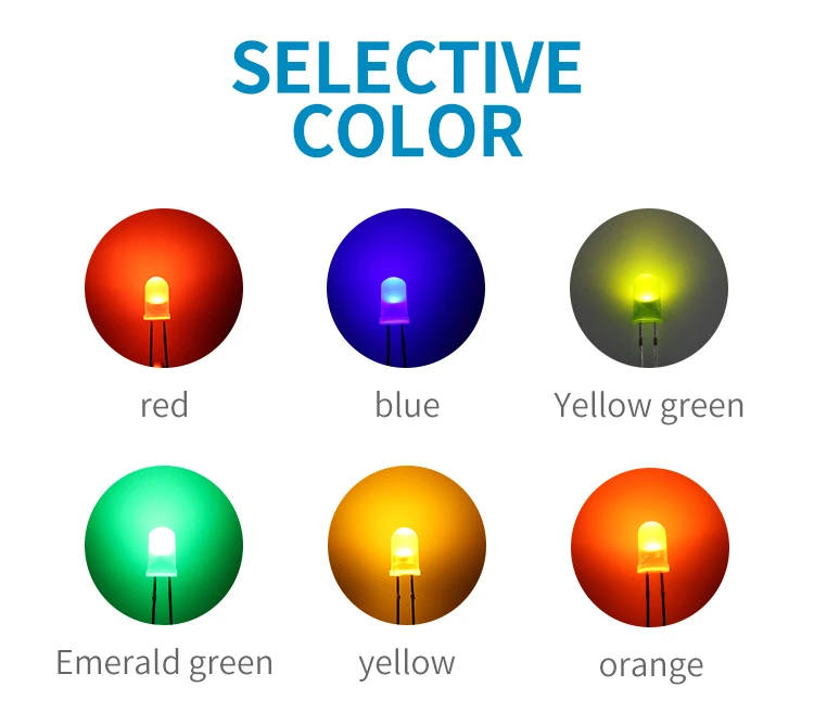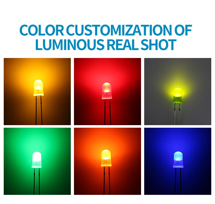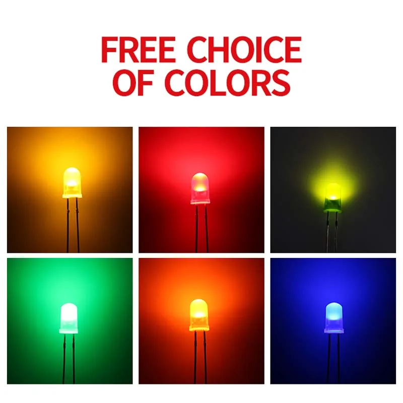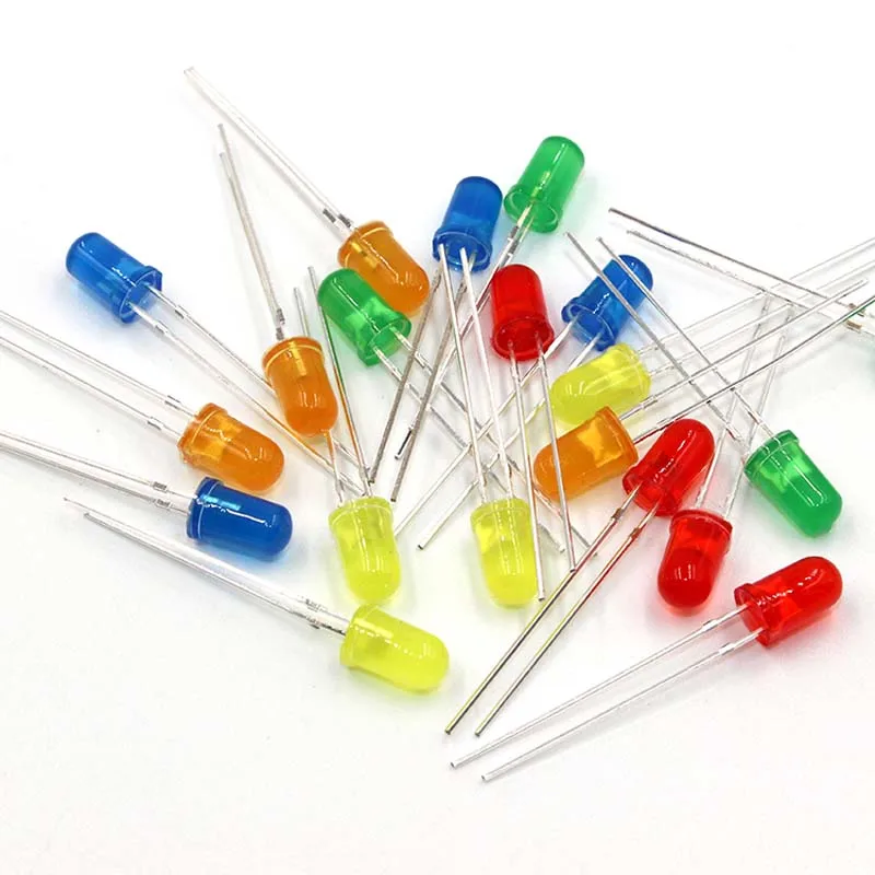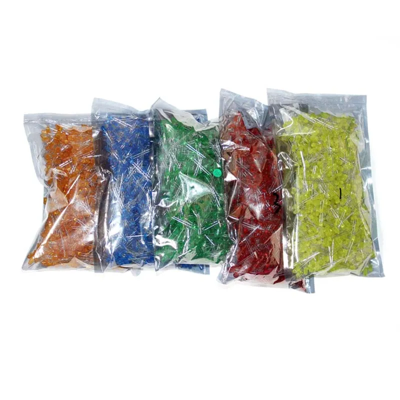 1000 шт. 5 мм DIP-светодиодный, круглая головка, длинные ножки с окантовкой, цвет белого светильник, синего, зеленого, желтого, светоизлучающие диоды